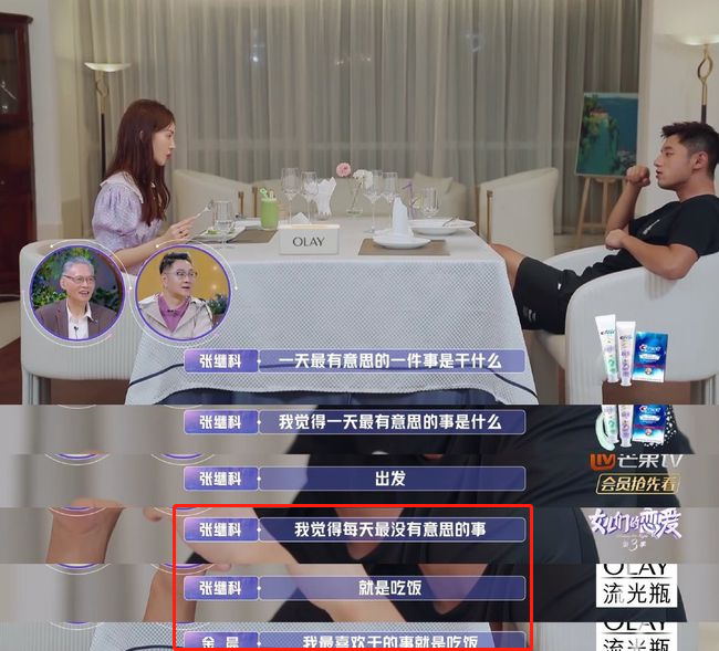 张继科作为运动员,在饮食上限制很多,因此全程基本没咋吃,一开始被程莉莎“批评”有点扫兴,但被金晨的吃相感染后,后面主动作出改变,从“看着你吃”到“陪着你吃”,距离一下子就拉近了。