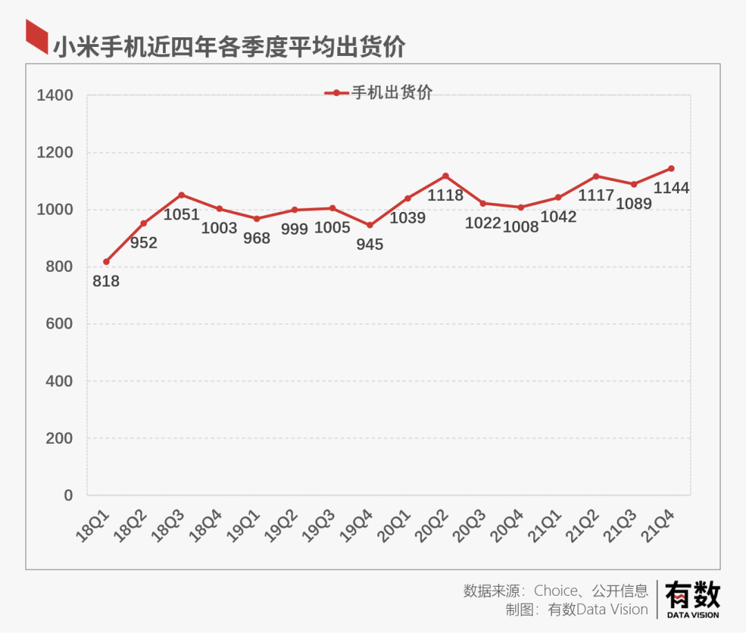 微博下面捧场的言论不少,但现实却相当骨感。过去两年多的时间里,小米没少推出高端价位的手机,但从它的平均售价迟迟未能有所突破,始终在1000元左右徘徊。
