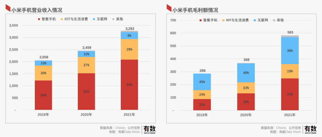 小米的营收结构分为智能手机、IOT和互联网三大业务。最理想的情况应该是这样的:手机营收维持稳定增速、IOT和互联网服务营收占比提升。这意味着手机获得了更多的用户,而用户把手机作为流量入口,进一步消费了后续服务。
