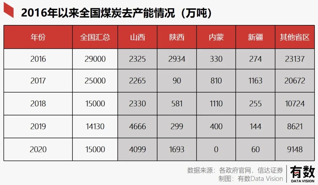 意见指出煤炭行业要较大幅度压缩煤炭产能,适度减少煤矿数量,跟随在意见之后的还有八个部委出台的配套文件,因此2016年至2020年五年时间内全国煤矿产能减少了9.8亿吨,其中7.2亿吨集中于晋陕蒙新之外的中东部省区,其中重庆的14个煤矿就被关闭。