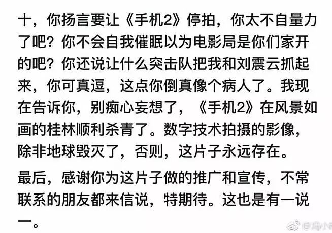 “影射”不等于“完全真实”你冯大导演应该比谁都明白,现在却揣着明白装糊涂,表明你已经心虚得失去了基本理智。