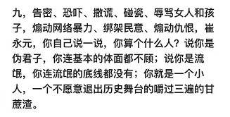 这条人身攻击太low了,不值一驳,“煽动网络暴力、绑架民意、煽动仇恨”,你们也可以煽动啊,民意是你们能煽动得了的吗?