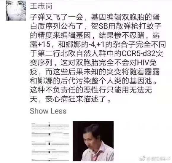 从上面截图里的专业人士话语,普通人士也应该能明白,这个基因编辑婴儿技术是彻底失败的。