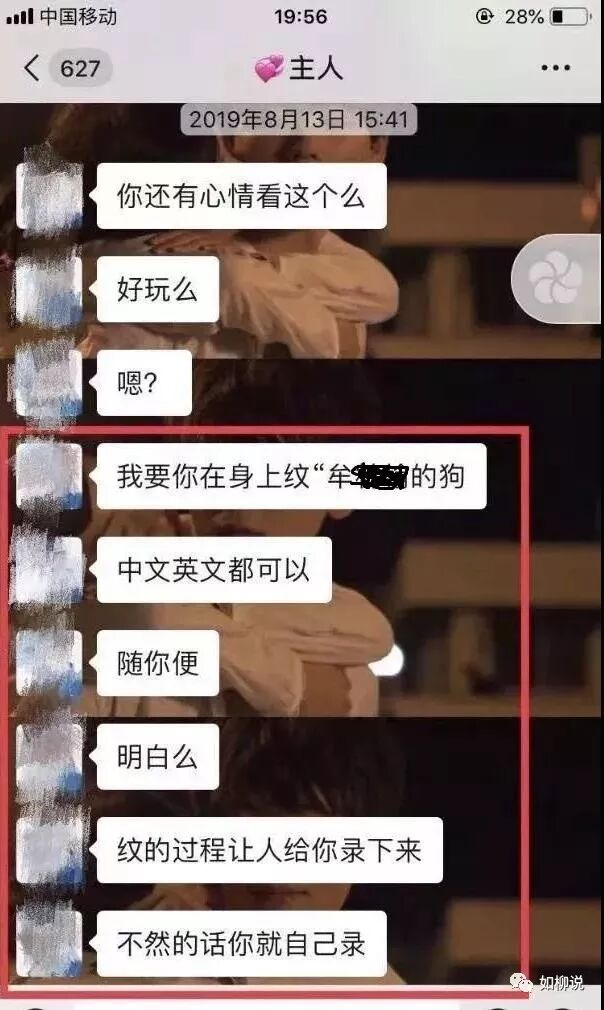 最终,包某忍无可忍,提出分手,而牟某不同意,以各种骇人听闻的手段要挟包某。牟某要求包某在身上纹上“牟某的一条狗”,而且还要包某把纹身刺字过程用视频录下来,要包某称呼其为“主人”;![]()