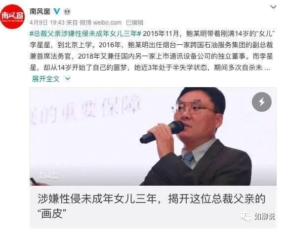 欧美上流社会这个娈童变态的恶习目前也在悄悄影响中国的一部分所谓精英。这次老天有眼,鲍某明没想到栽到来自农村的的一家三口身上,也是活该!虽然这次“恶人自有天收”,鲍某明被公安部驱逐出境,大快人心,但是如柳担忧的是,中国还有多少拿着美国国籍、在中国政商学等各界呼风唤雨、为美国利益奔走的”鲍某明”?虽然“鲍某明性侵事件”闹得轰轰烈烈,虽然现在事件真相大白,自始至终,几乎所有的舆论都是就事论事讨论性侵事件本身,很少有人关心鲍某明这类人的真实身份和对国家的损害,这是令如柳感到异常悲哀的地方。现在鲍某明被公安部驱逐出境,也是出于鲍某明本身是美国国籍、具有美国律师资格、却同时获取中国的律师执业证及从事相关律师工作,违反了我国的律师执业管理相关法律法规,并没有追究鲍某明究竟是什么身份。事实上,鲍某明的背景极其可疑,这才是我们的媒体及舆论要关注的地方。鲍某明出事前曾是美国向中兴集团派出的独董,凭这一点,此人背景就极其可疑。中兴为什么会被美国制裁得那么惨?明白人应该能想到,排除不了某些内贼的里应外合及舆论歪曲引导。鲍某明是中兴被美国制裁罚款数十亿美元后,美国向中国派出的“殖民督查”之一,表面身份是独立董事。今年,美国又一次对中兴发起审判,要求再重罚数十亿美元,这里面,应该少不了美国派的“督查”们利用职务之便,收集公司数据资料进行罗织罪名的功劳。![]()