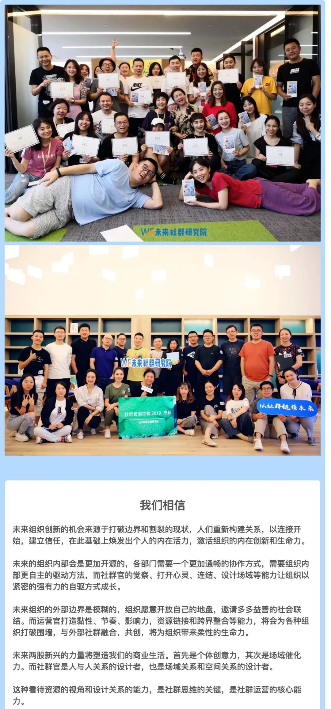 1、WF未来社群研究院为学员提供社群共创协作工具与丰富的社群活动。