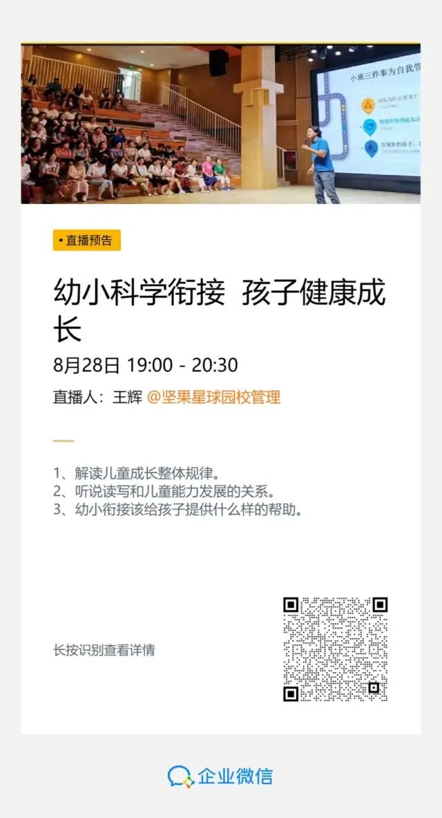 自2018年,鼓楼教育关注幼小衔接,助力儿童成长的第一个关键期。鼓楼心理化教育138项目本期为您邀请知名专家,为鼓楼区新生家长举办公益家长专题讲座,旨在帮助其在幼小衔接关键期提升其社会性、心理、身体发展上的衔接,从而促进儿童的学习力提升。