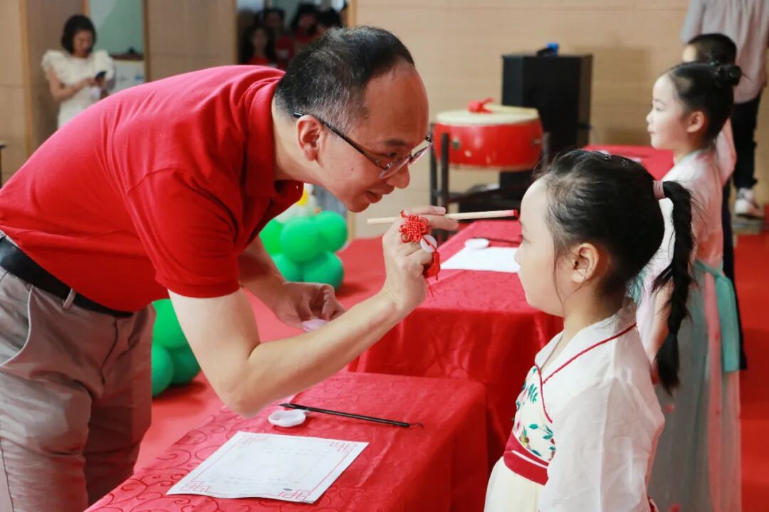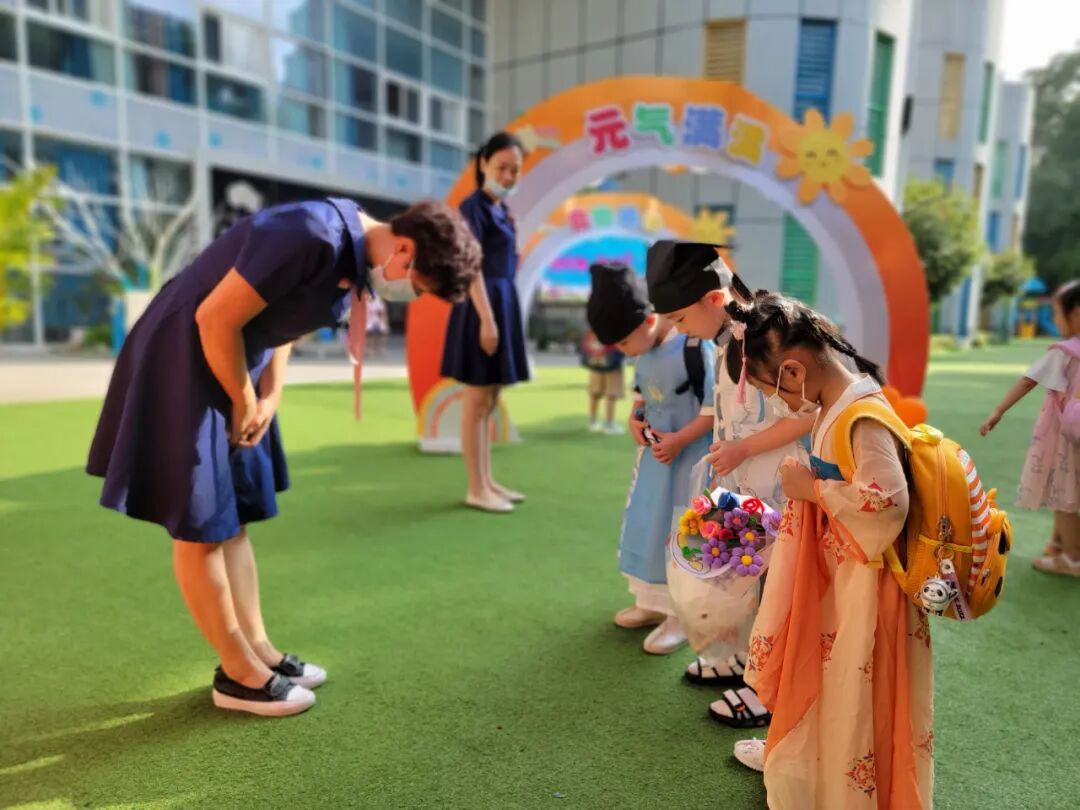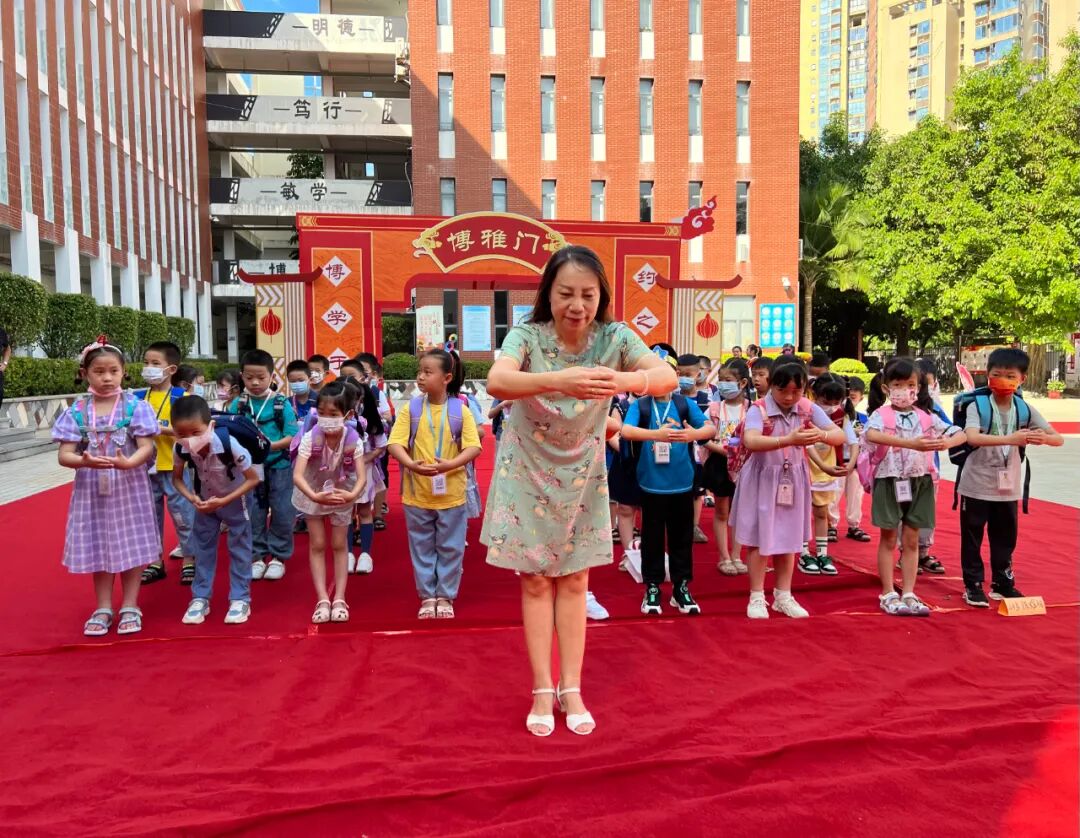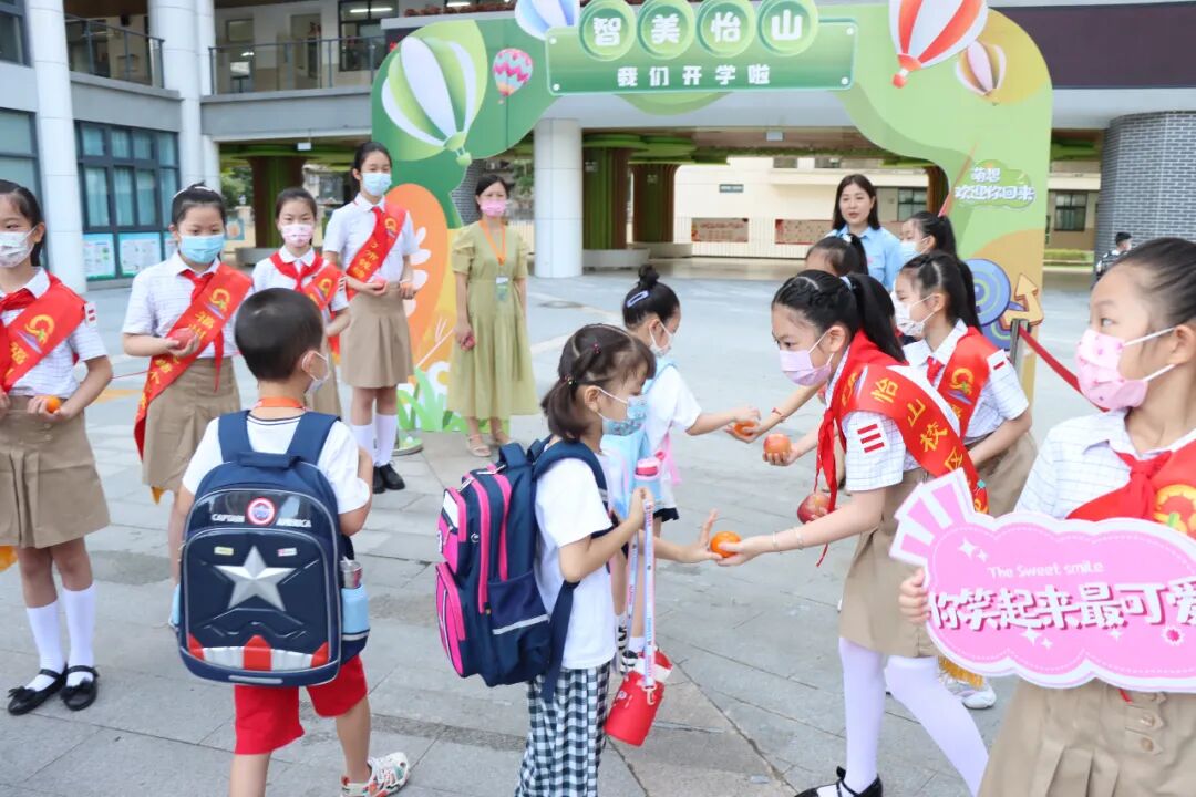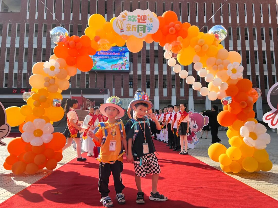 学校开展入学仪式有:“走红毯”——“过彩门”——点朱砂——送夏扇——领棒棒糖——分享暑期生活。特别的开学仪式 ,让孩子们留存住一份载入记忆的仪式感。