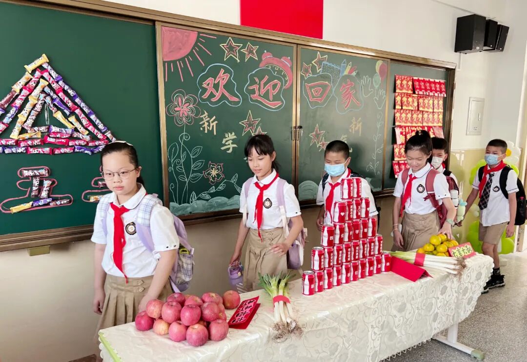 学校大队委给同学们送上喜乐开学礼,祝大家大吉大利、学业旺旺、身体棒棒,希望孩子们在新学期里能有所收获。
