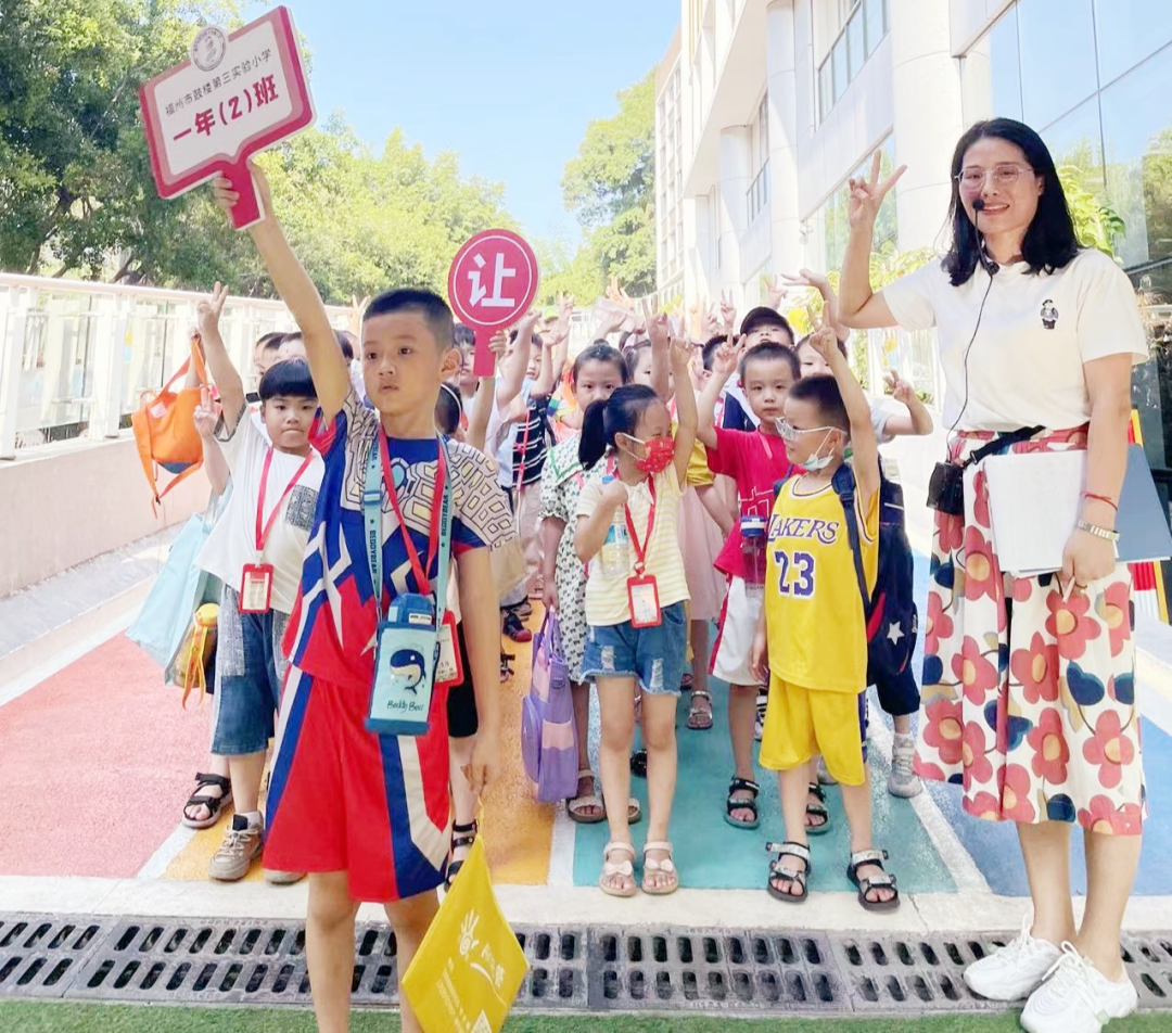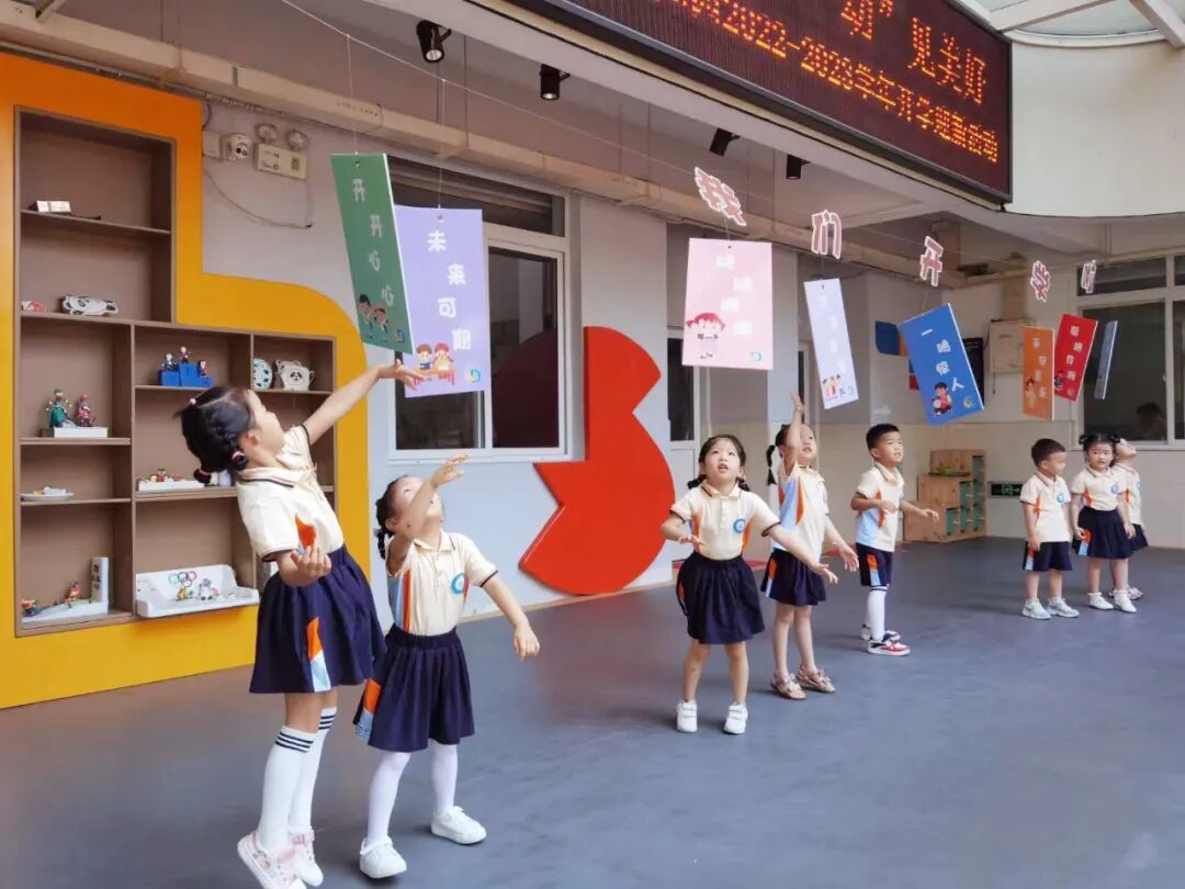 富有寓意的成长树指印、抽取幸福种子、班级地图寻班记等,一个个富有仪式感的活动,寄托着老师们的爱与希望。开学礼中,孩子通过信息互动拼图、体育游戏、福建舰介绍等直观感受、体验,知道台湾是中国不可分割的一部分,小小心里播种一颗爱国的种子。