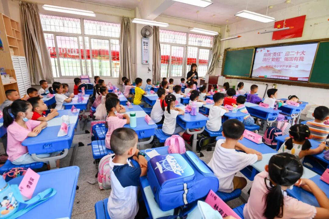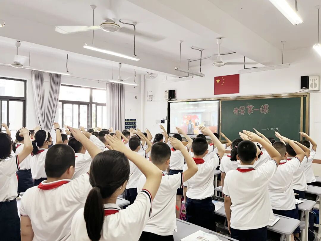 全体学生实时收看了由中宣部、教育部、中央党史和文献研究院、中央广播电视总台联合制作的“开学第一课”。“从小听党话,永远跟党走”“学习新思想,做好接班人”等主题宣传教育,提高了学生的爱国思想教育。