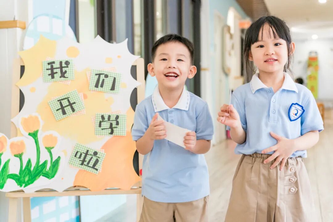 开学迎新活动中,孩子们用“花样签到”“触跳”各种祝福牌等独特而温馨的方式表达对师长的诚挚问候,迎接新学期的到来。