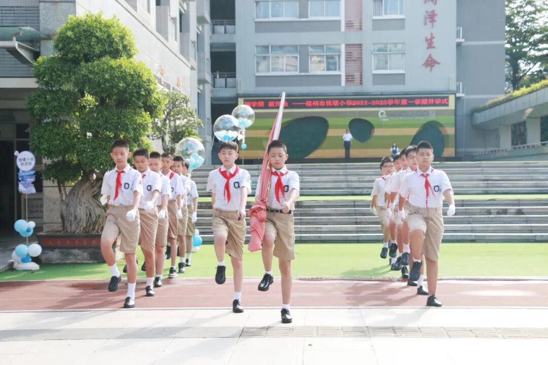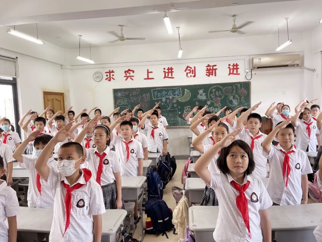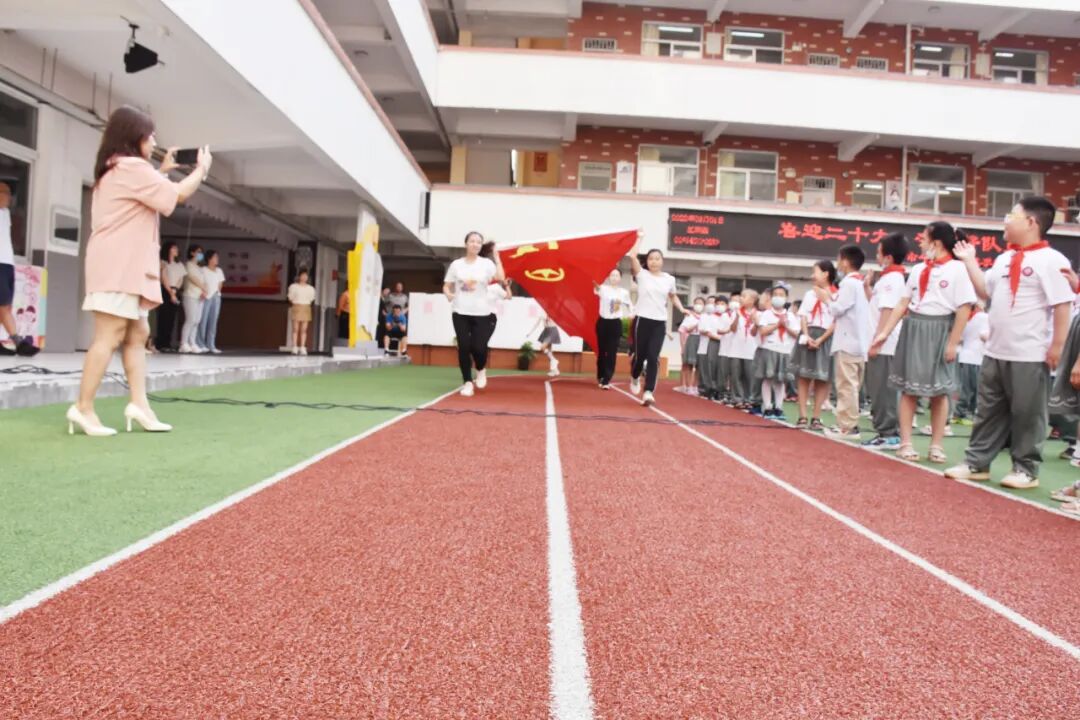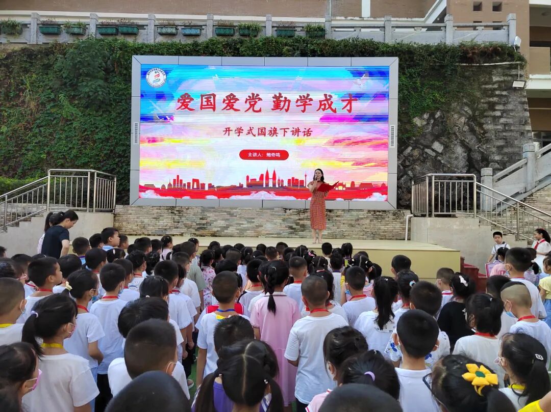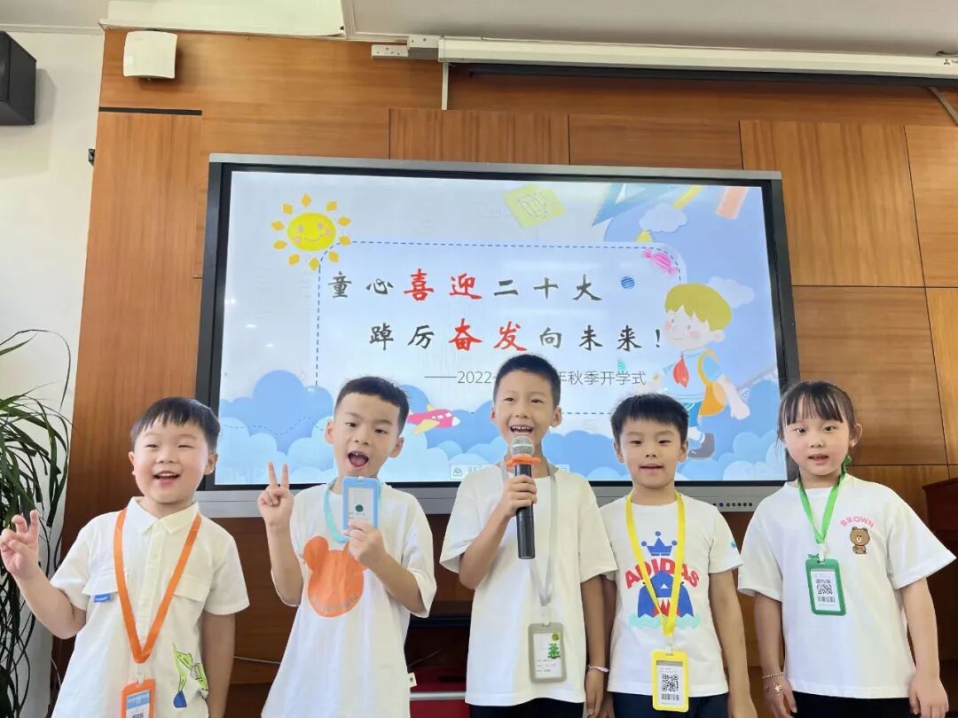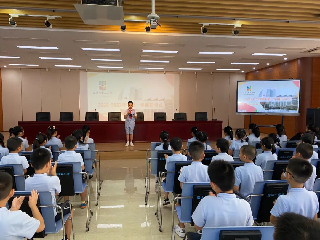 在开学式上,陈炜校长勉励同学们赓续红色血脉,把握当下,展望未来;卢颖宁书记为孩子们带来“开学第一课”《肩挑“责任”迎二十大 践行“勤勉”强国有我》,凝聚成长的力量。