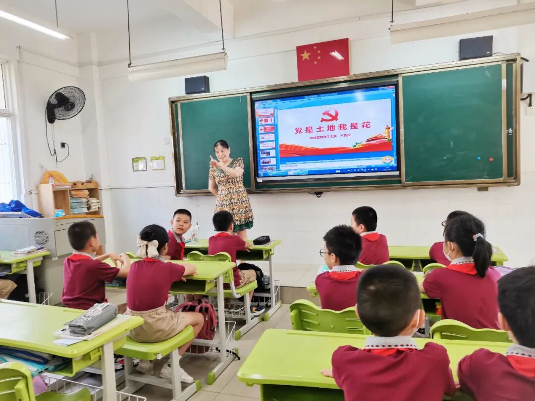 学校首次开学铃声节来袭!李舒冬校长为“华华”“侨侨”们送上“开学第一课”。她引导“华华”“侨侨”们通过红色小知识竞答知晓百年党史,传承红色精神,进行“润物细无声”的点化,使爱国情愫得以形成、升华。