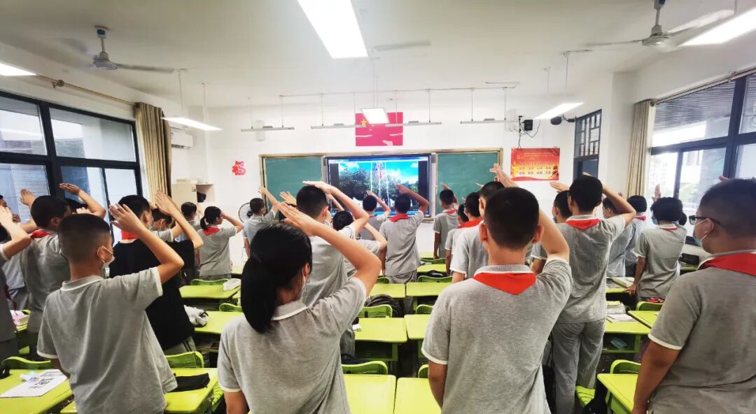 同学们展示暑期劳动作品——我的种植之旅“向日葵”,表达红领巾心向阳的情感。“大先生”刘旭校长以“今日之中国非昔日之中国”为主题,为同学们上了一堂精彩、易懂、深刻的党课,让红色火苗在学生的心中燃烧。少先队员们录制红色视频,进行红色教育宣讲,增强爱国情感,同时,各班级进行禁止手机入校园教育工作。