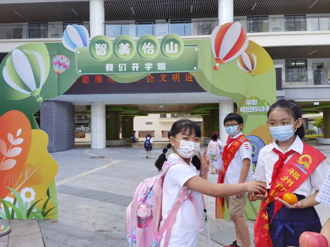 跨入智美怡山门,摸苹果、橘子,寓意平平安安,大吉大利,吉祥物“萌想”欢迎你回来。辅导员进班讲思政,上好“爱国教育第一课”。心健教师来支招,定制开学心理调适指南。“开学防疫第一课”,争做防疫小卫士。