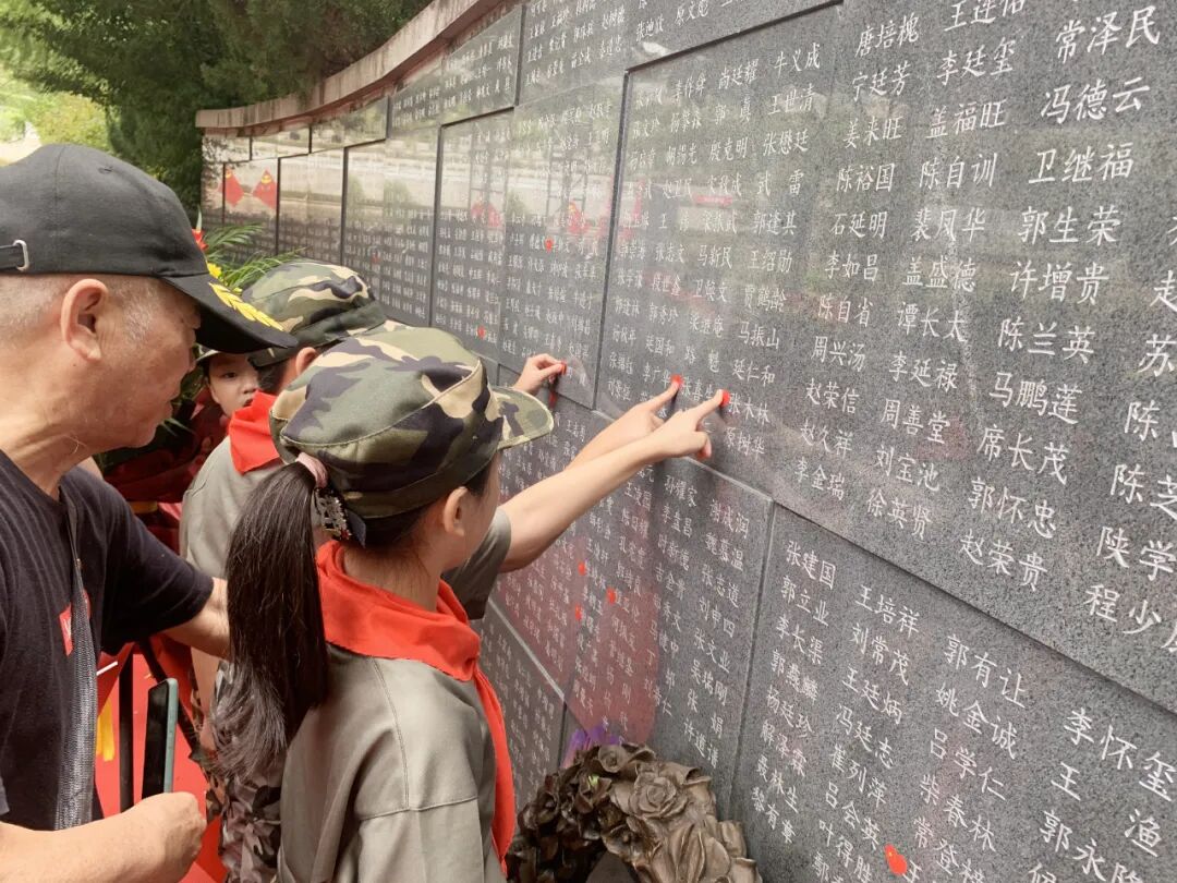 师生一行参观了“双拥”主题雕像、“军民情、七律”景墙、八闽开闽将军印鉴墙、“雨夜帐办公”故事景墙、“817”纪念园。雷校长、退伍军人陈叔叔先后为党员教师和学生代表们讲抗战故事,回顾中国革命历史。