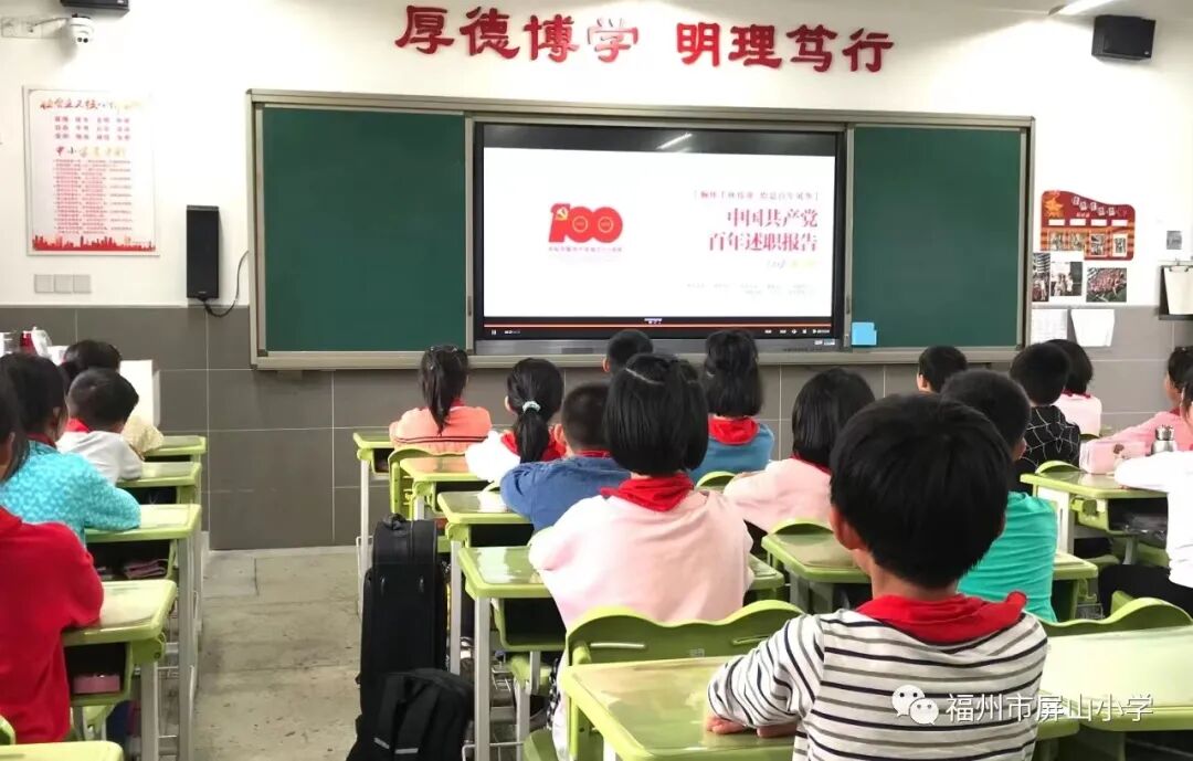 学校开展了“观红色电影,学百年党史”主题活动;屏山学子们阅读红色书籍,开展讨论交流,感受革命先辈坚贞不屈、无畏牺牲的爱国主义精神;感悟红色文化,打卡福州红色旅游景点,少先队员们用独特的方式表达自己的爱国情怀。