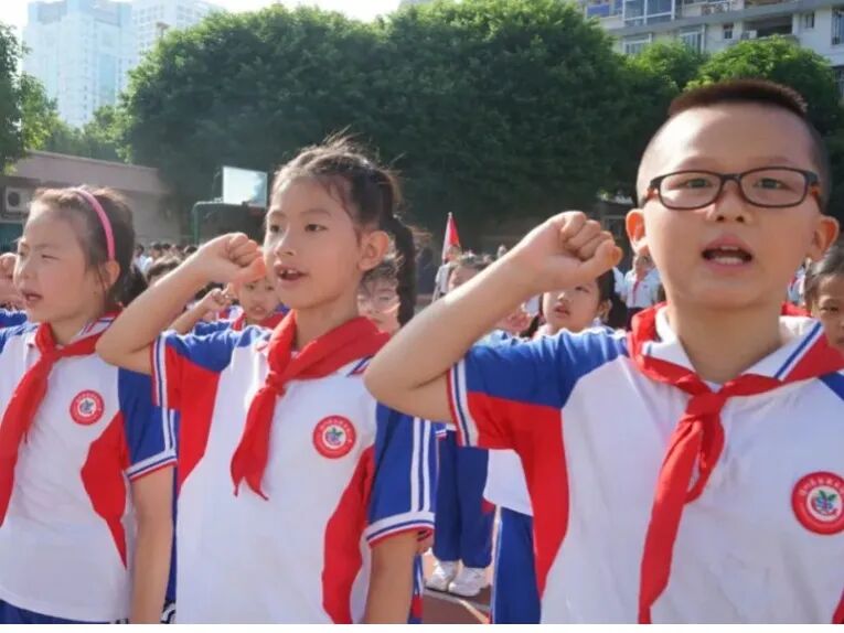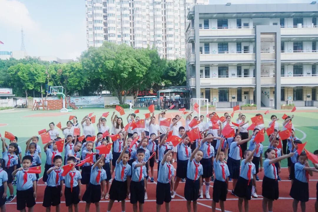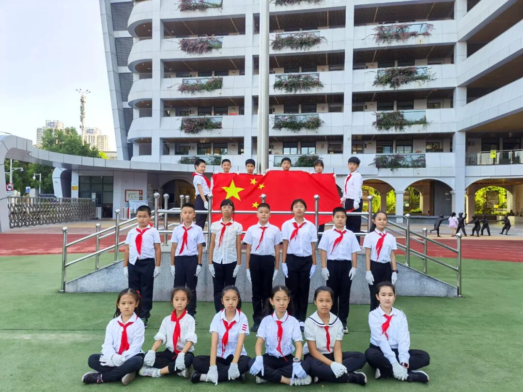 学校通过党、团、队同升一面旗、同唱一首歌、与国旗同框等活动,祝福伟大的祖国繁荣昌盛。