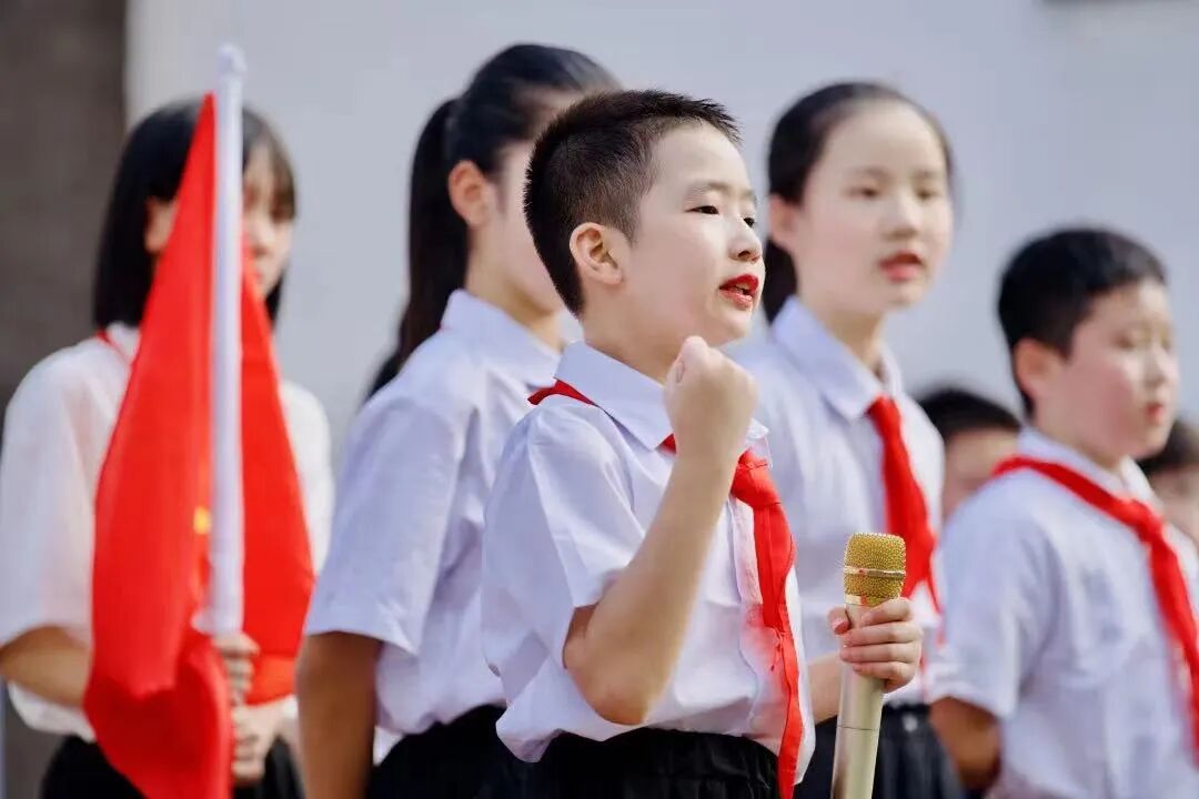 少先队员代表朗诵《名字叫中国》,献礼新中国。国旗下,党团员老师、少先队员代表在国旗下庄严承诺:“为共产主义事业而奋斗,时刻准备着!请党放心,强国有我!”