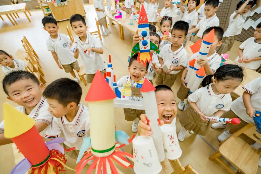 孩子们唱红歌,用稚嫩的歌声与手势表达对祖国的热爱;孩子们倾听航天知识,介绍与爸爸妈妈共同制作的航天模型,展示火箭发射,激发孩子们对航天科技的向往,作为中国人的自豪感。
