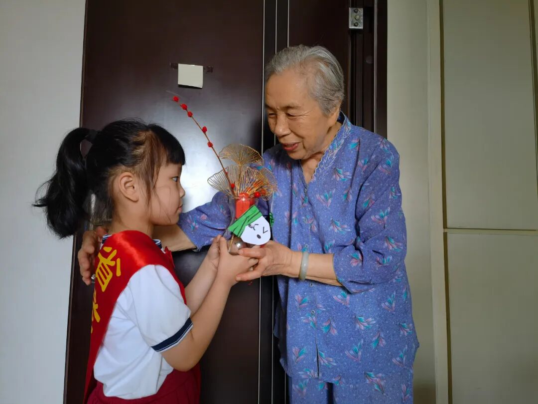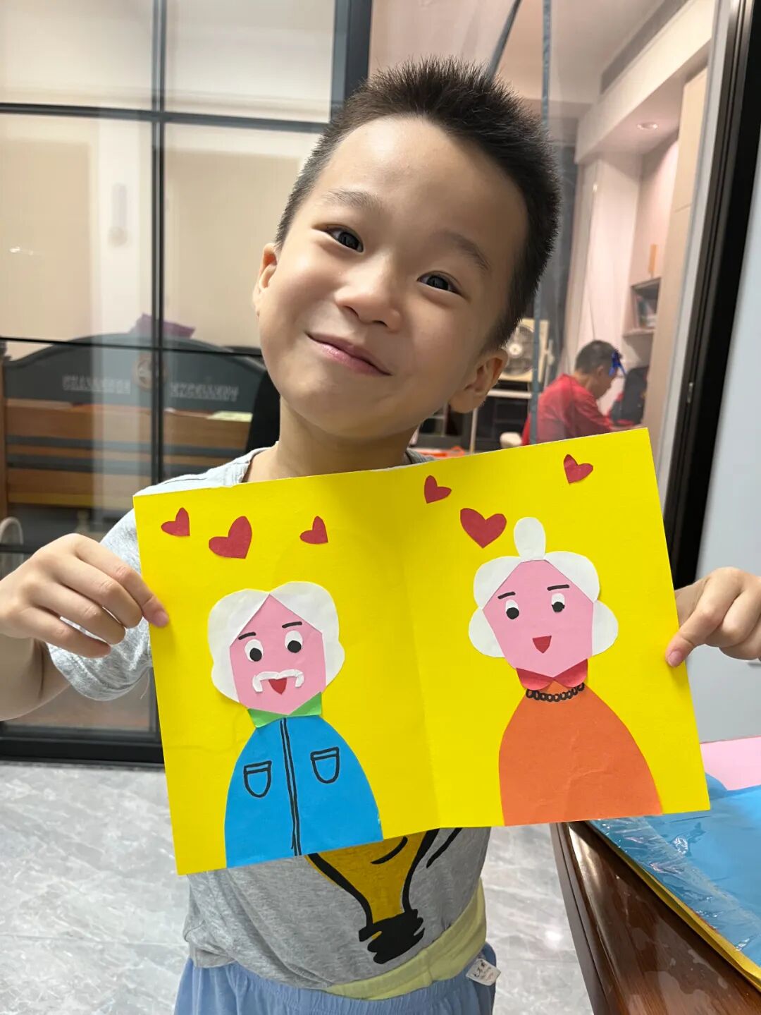 孩子们为爷爷奶奶捶捶腿、捏捏肩,老人们的脸上溢满笑容;动手做一朵纸卷花,为爷爷奶奶献上最真挚的节日祝福。