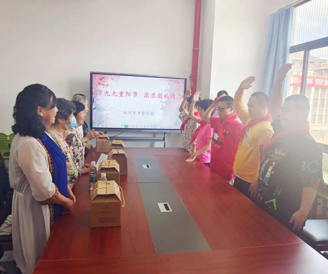 学校开展了“喜迎二十大 老少携手颂党恩”主题活动。同学们为退休老教师们敬茶、表演节目朗诵《岁岁重阳》和古筝书法《奏响重阳》。