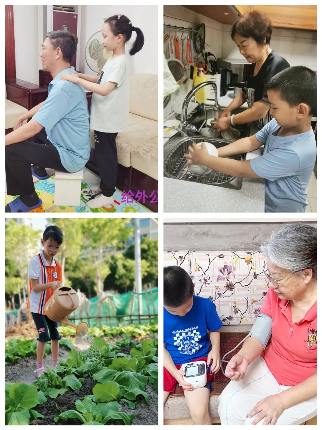 孩子们有的为爷爷奶奶捶背、洗脚,有的和爷爷奶奶一起登高……通过一系列活动,孩子们体会到与老人之间的浓浓亲情。