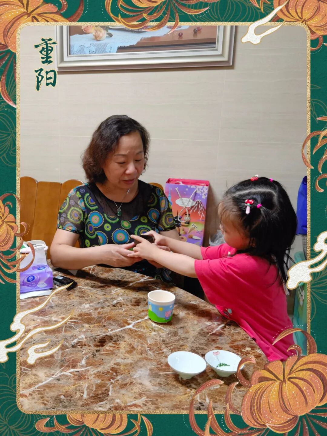 幼儿园通过“赏菊”“巧手做重阳糕”“小小礼物送祝福”“为爷爷奶奶做件事”等活动,在孩子们的心中种下尊老、爱老、敬老的种子。