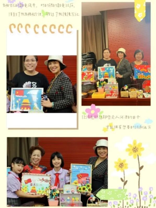 退休老教师和大家一起合作完成黏土作品,共同祝愿祖国繁荣昌盛、河山锦绣。大家还用黏土精心制作出五颜六色、姿态各异的花束,献给退休老教师们,愿时光不老,老师们身体健康,永远年轻。