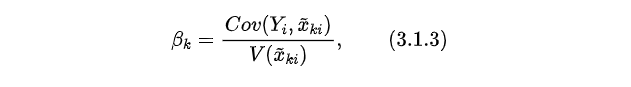 在简单的二元情况下,回归向量只包括单一回归元和一个常数,斜率系数是,截距是。在多元情况下,有多个非常数回归元,第个回归元的斜率系数如下: