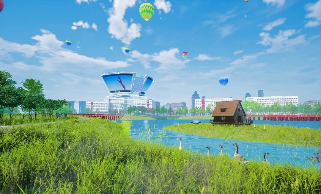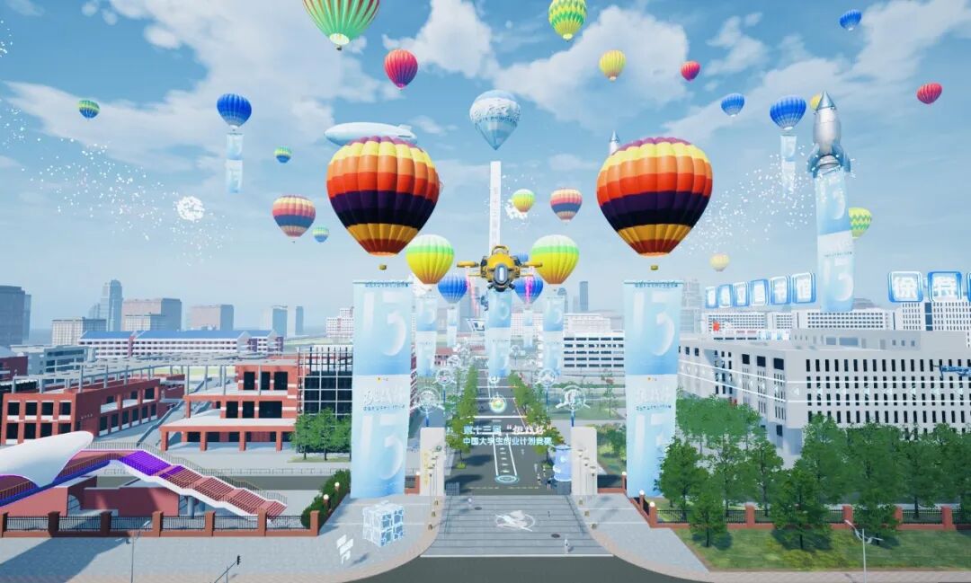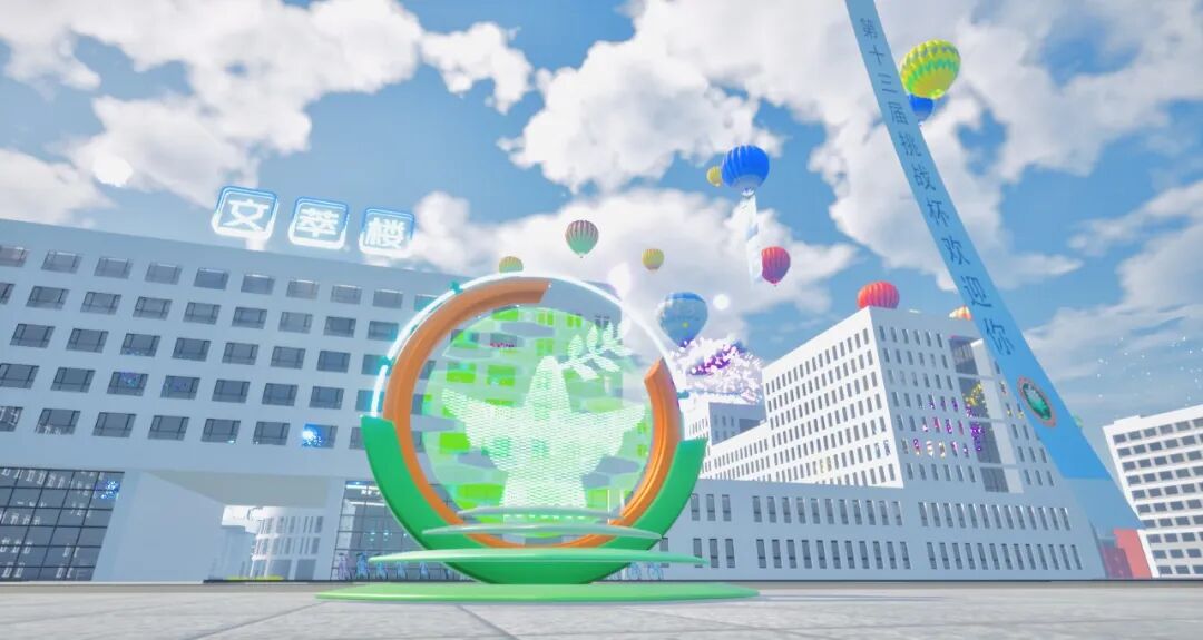 数字校园1:1还原了北京理工大学良乡校区和相关数字资产。数字校园总面积达5平方公里,包括徐特立图书馆、行政楼、北湖等地标。用户可以在虚拟空间内与挑战杯氛围元素互动,也可参与热气球观光、校史浏览、自行车骑行等活动。