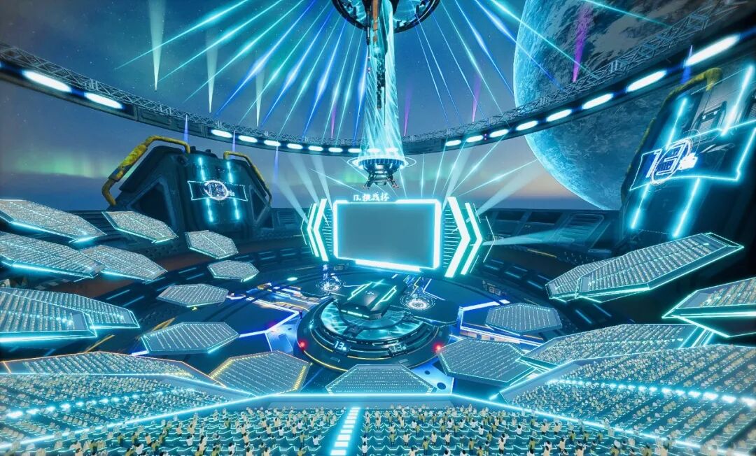 挑战杯云舞台是一个围绕科幻元素设计的虚拟世界。在云舞台中,用户摆脱现实地理地域束缚,可以在开幕式期间与其他用户一起体验开幕式活动,在比赛期间体验预热采访、答辩直播等精彩内容。