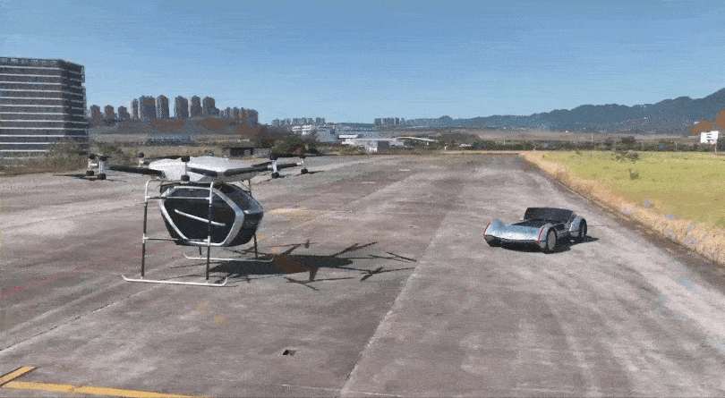 超轻量化的座舱及内饰设计,自重80千克,前后排2座布局,实现高效空间利用及空气动力学优化设计,具备飞行汽车驾驶人机交互操作系统,智能感知传感器引导座舱分别与底盘或飞行器对接,实现地面行驶、空中飞行模式切换。