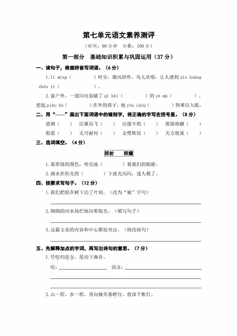 第七单元测试卷资料展示