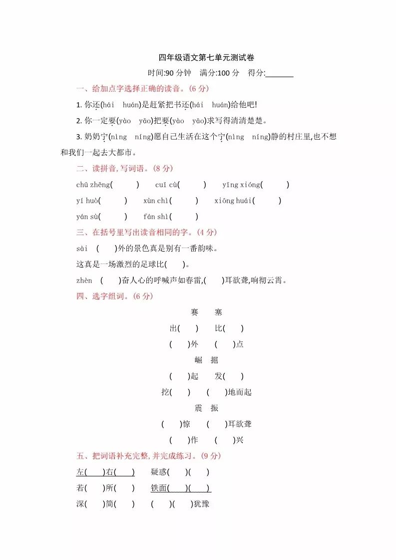 部编版语文四年级