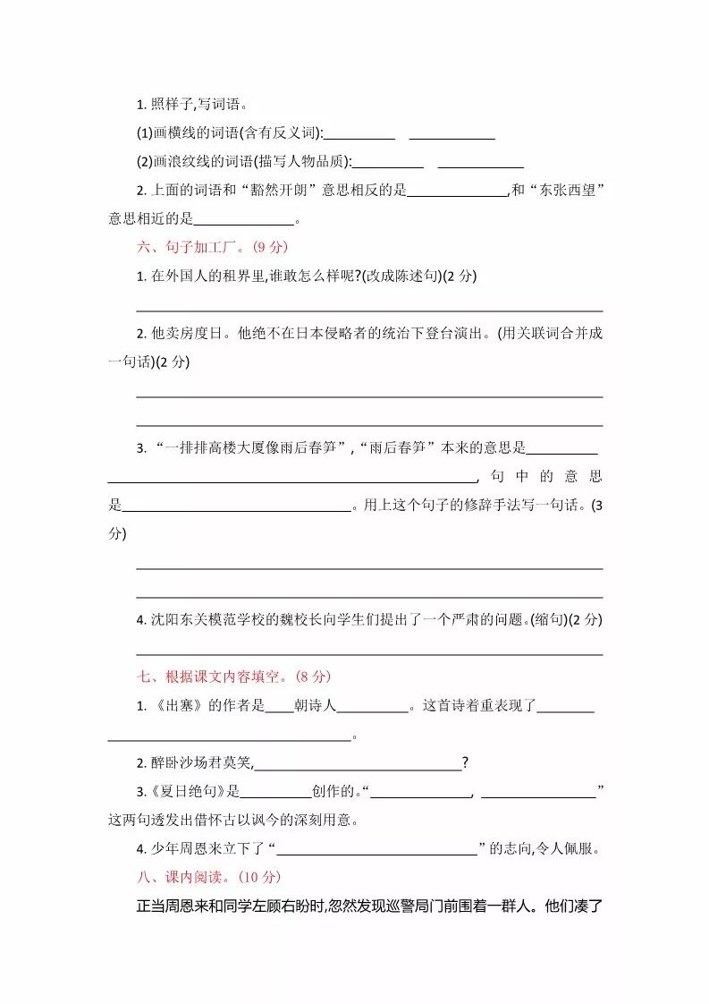 部编版语文六年级