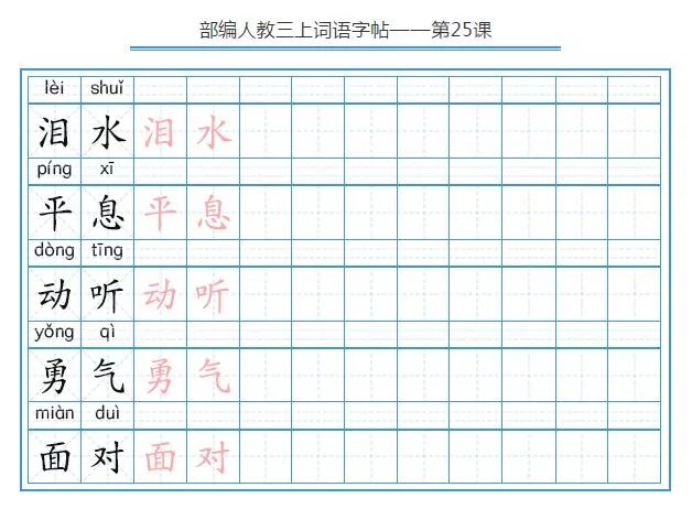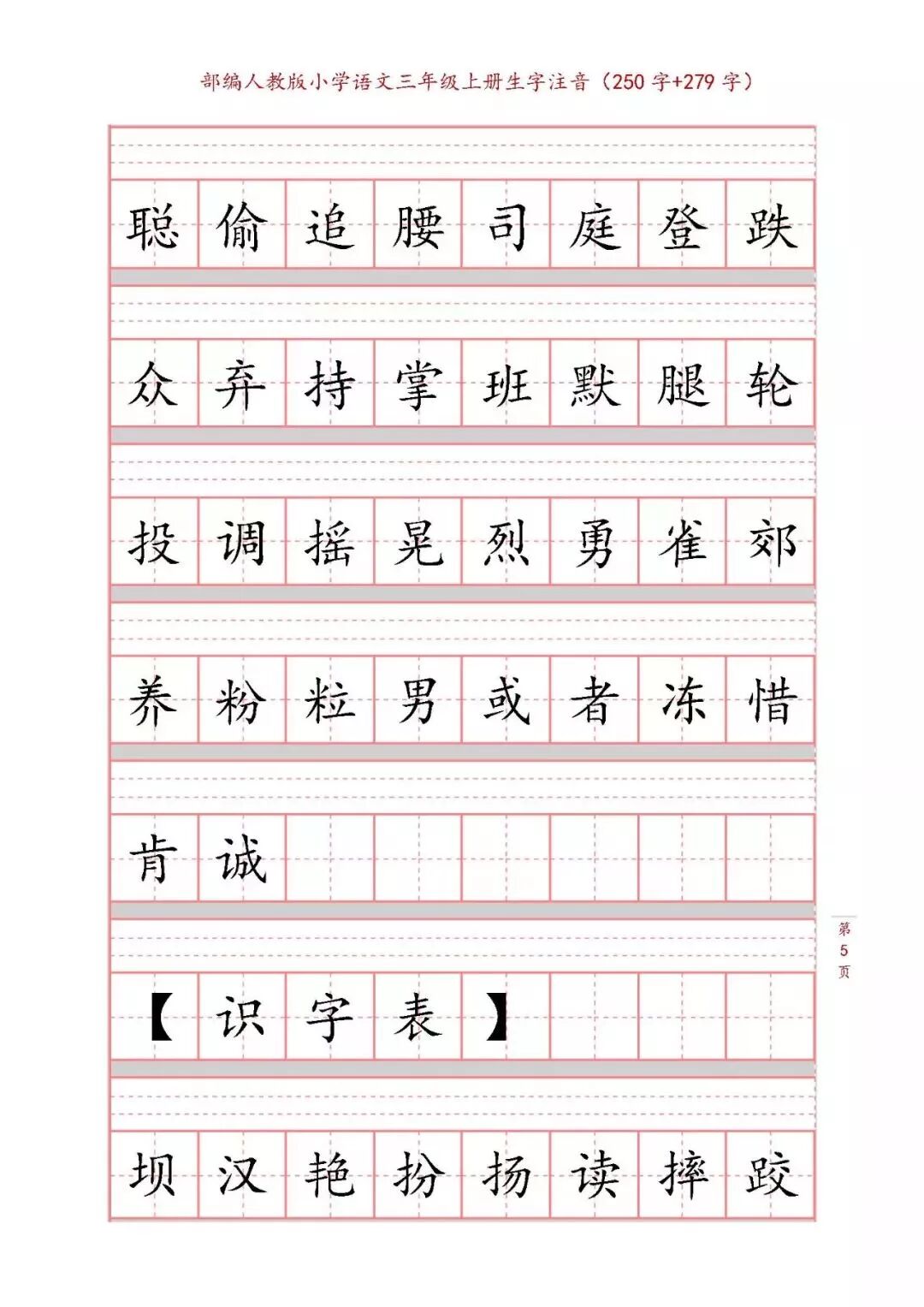 今天话筒君,分享给各位家长和老师的是——《统编版(部编版)语文三年级上册5套字、音练字帖,带拼音、笔顺》。字帖一共有五套。大家可以根据自己的喜好自行选择、打印。让孩子在暑假多多练字,多多预习,为下学期的进步,打下一个坚实的基础
