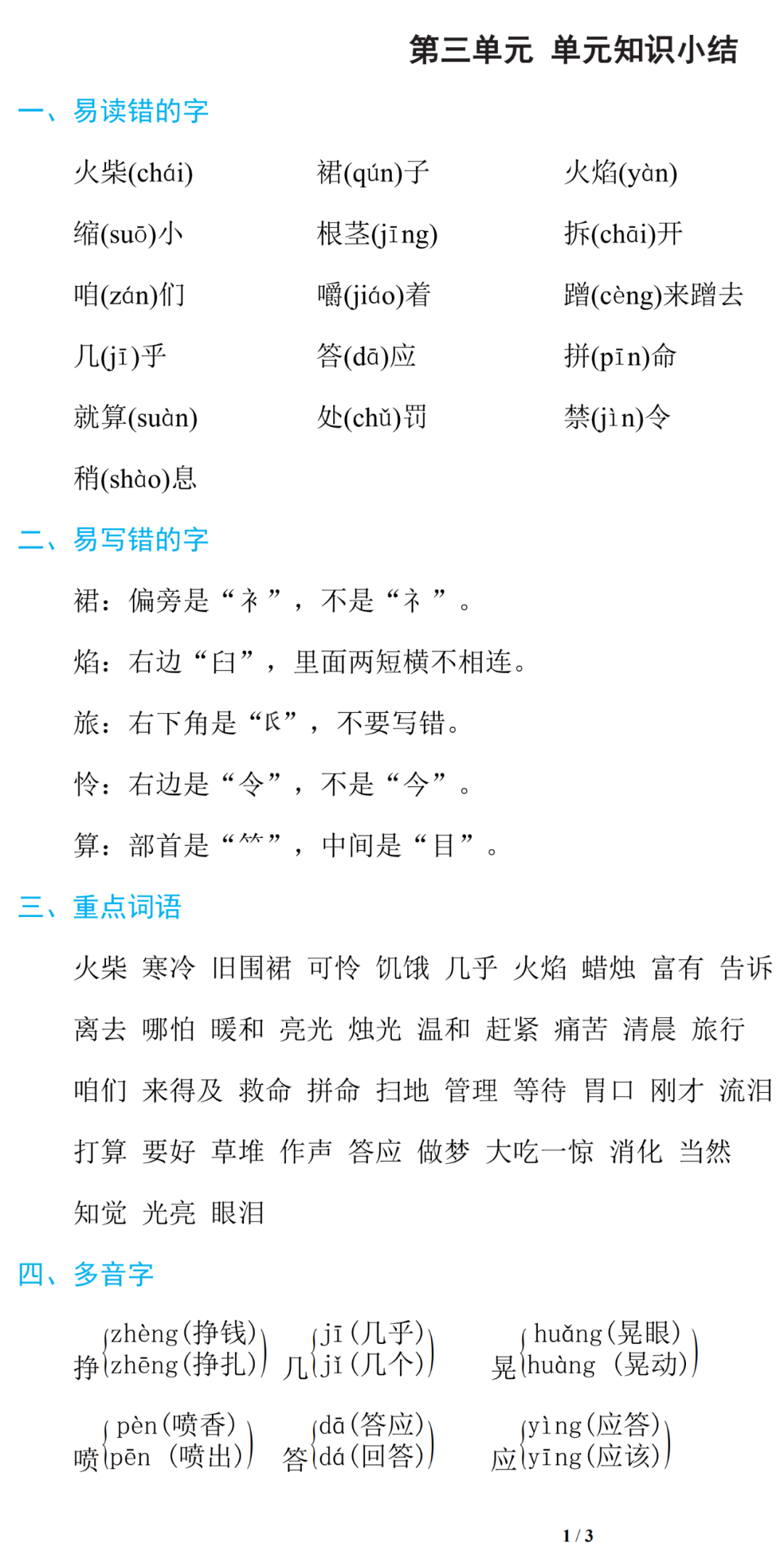 开学有一段时间了,第三单元已经学完了,为了让孩子更好的巩固本单元知识点,话筒君特意为大家,精心整理了《统编版语文三年级(上册)第三单元知识小结》。一共2套。建议各位老师和家长领取,打印给孩子练习、测试!