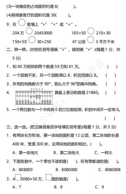 人教版数学四年级(上)期中精卷附答案,11套,免费下载