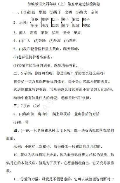 今天,话筒君老师分享给大家的是:统编版语文4年级(上册)第5单元精品试卷、答案,共5套,可打印。由于版面有限,仅展示其中一套试卷。