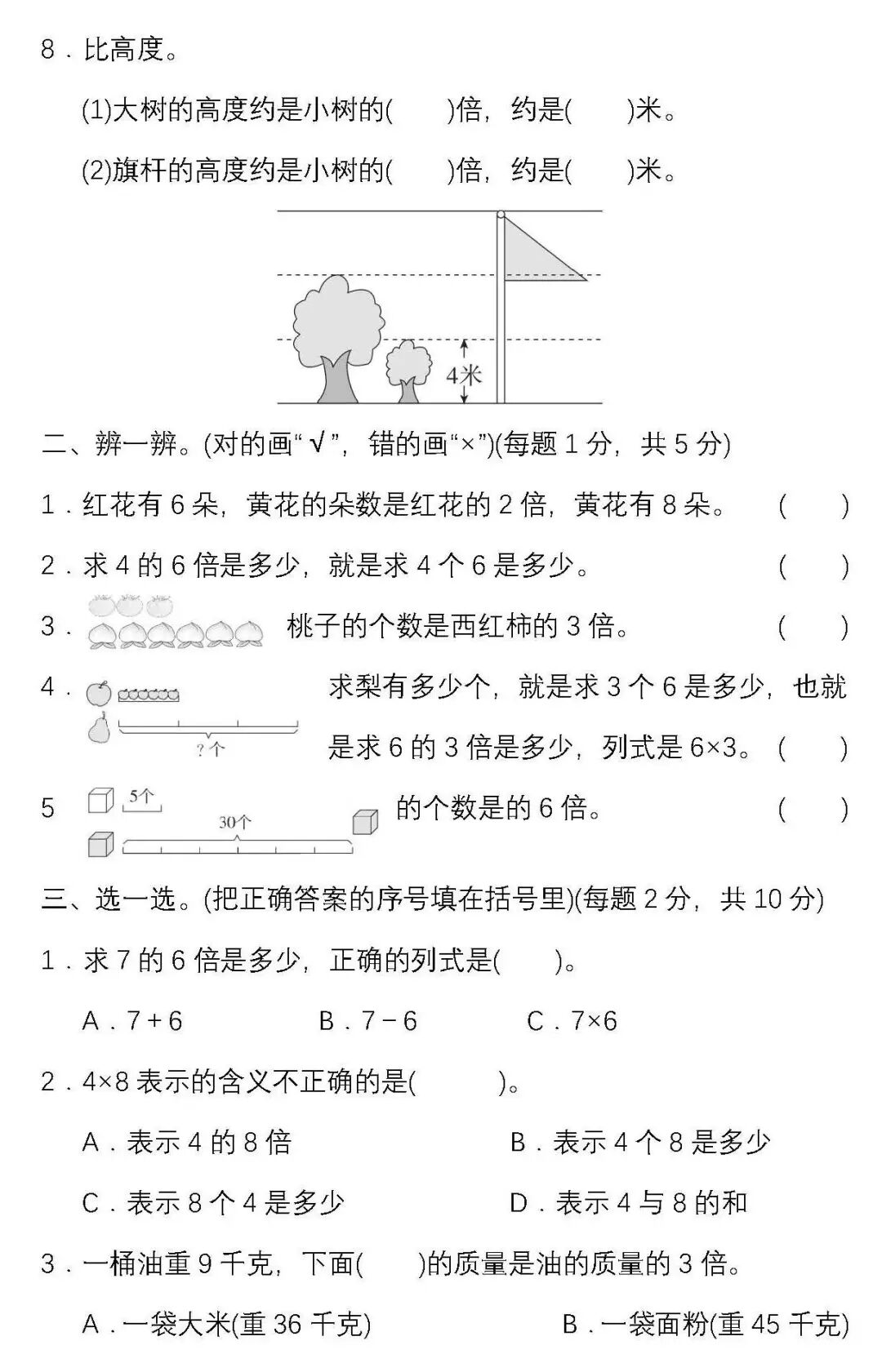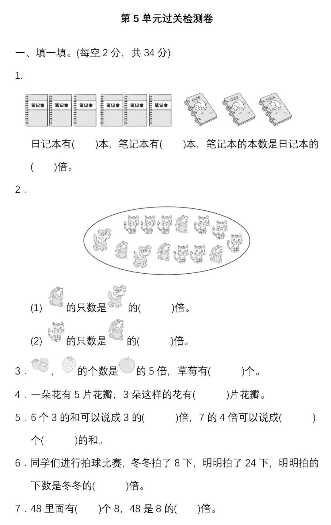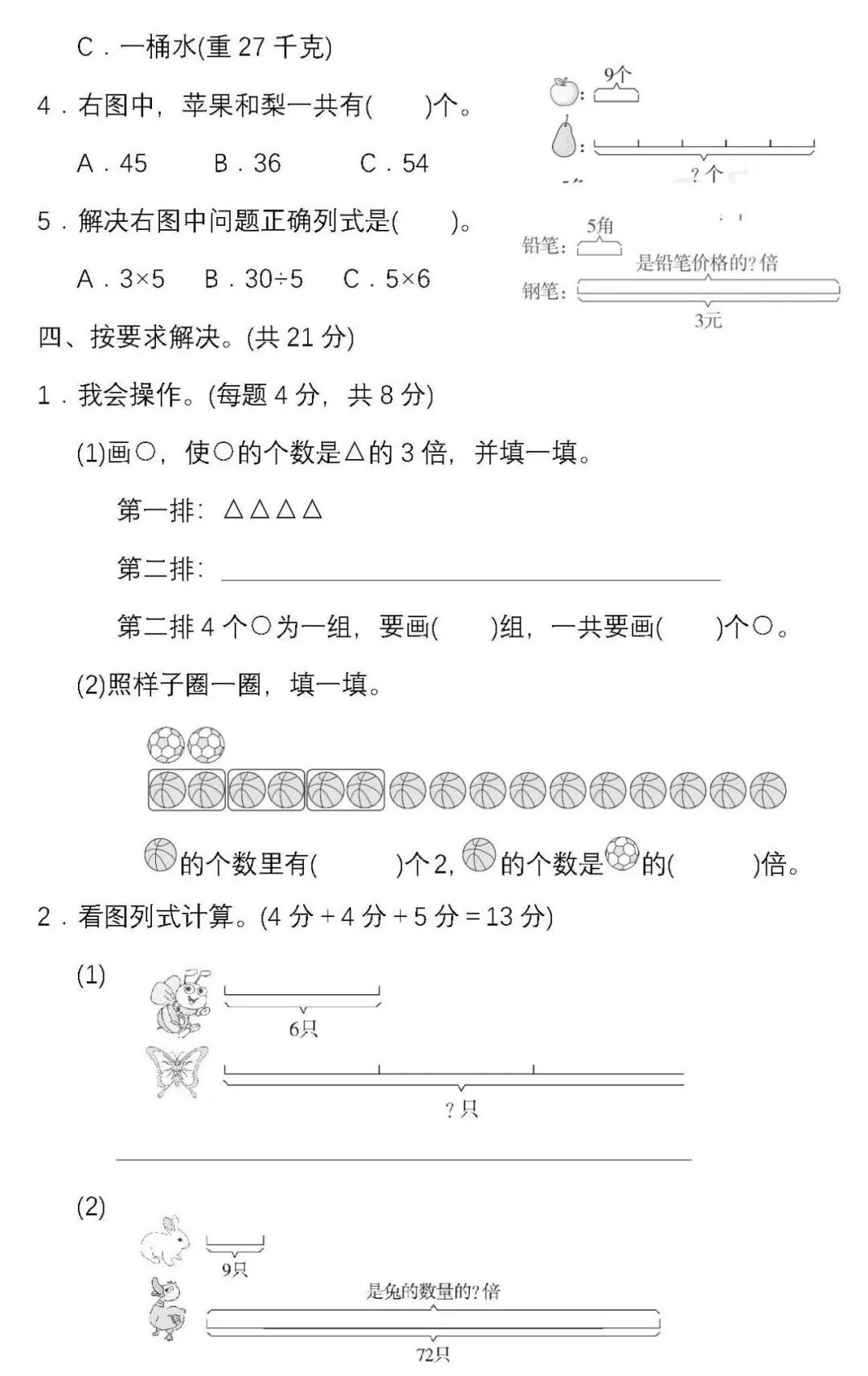 人教版数学三年级(上)第五单元试卷及答案丨可下载打印