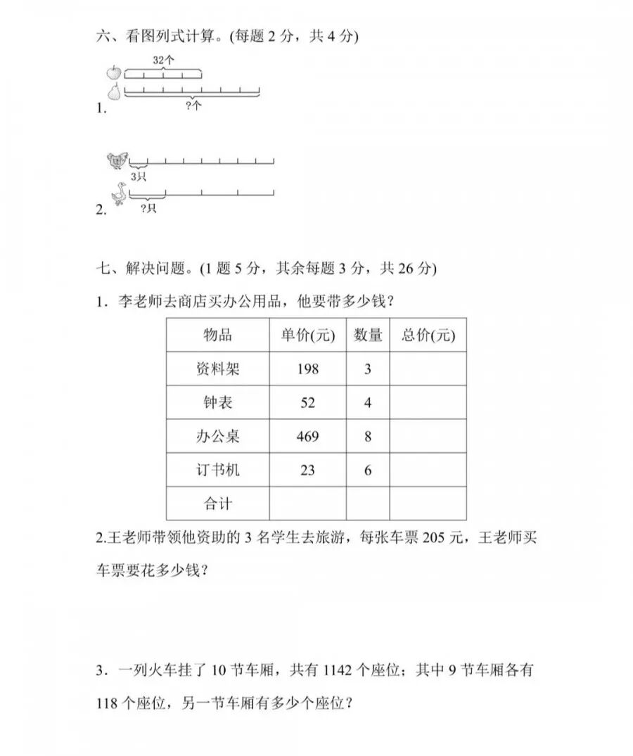 人教版数学三年级(上)第六单元试卷及答案丨可下载打印