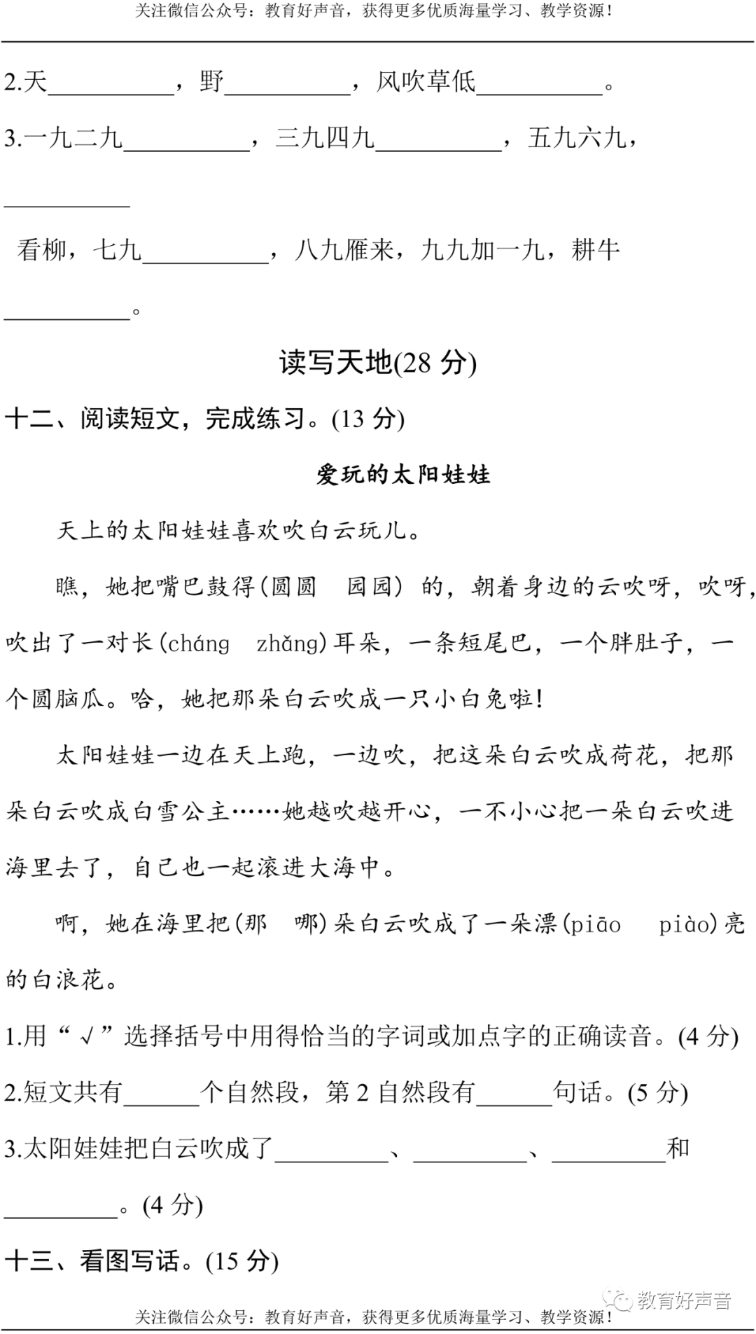 今天,话筒君老师分享给大家的是:统编版语文2年级(上册)第7单元精品试卷、答案,共5套,可打印。由于版面有限,仅展示其中一套试卷。