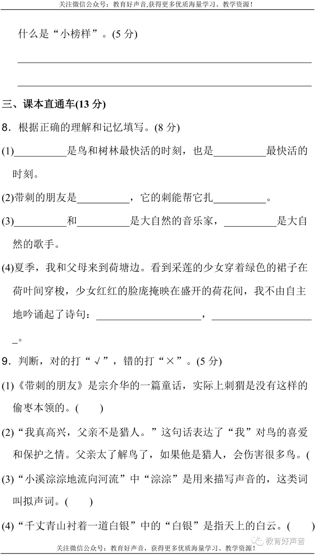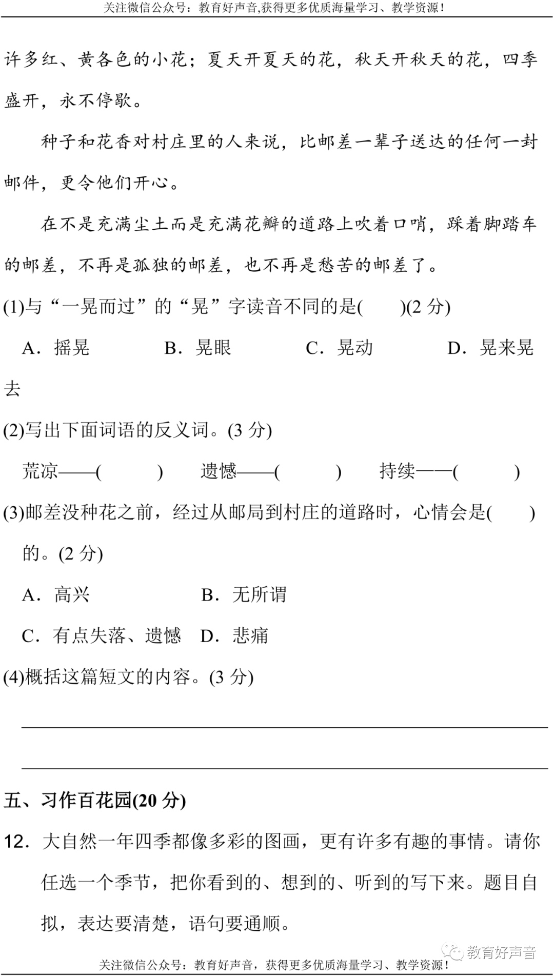 今天,话筒君老师分享给大家的是:统编版语文3年级(上册)第7单元精品试卷、答案,共5套,可打印。由于版面有限,仅展示其中一套试卷。