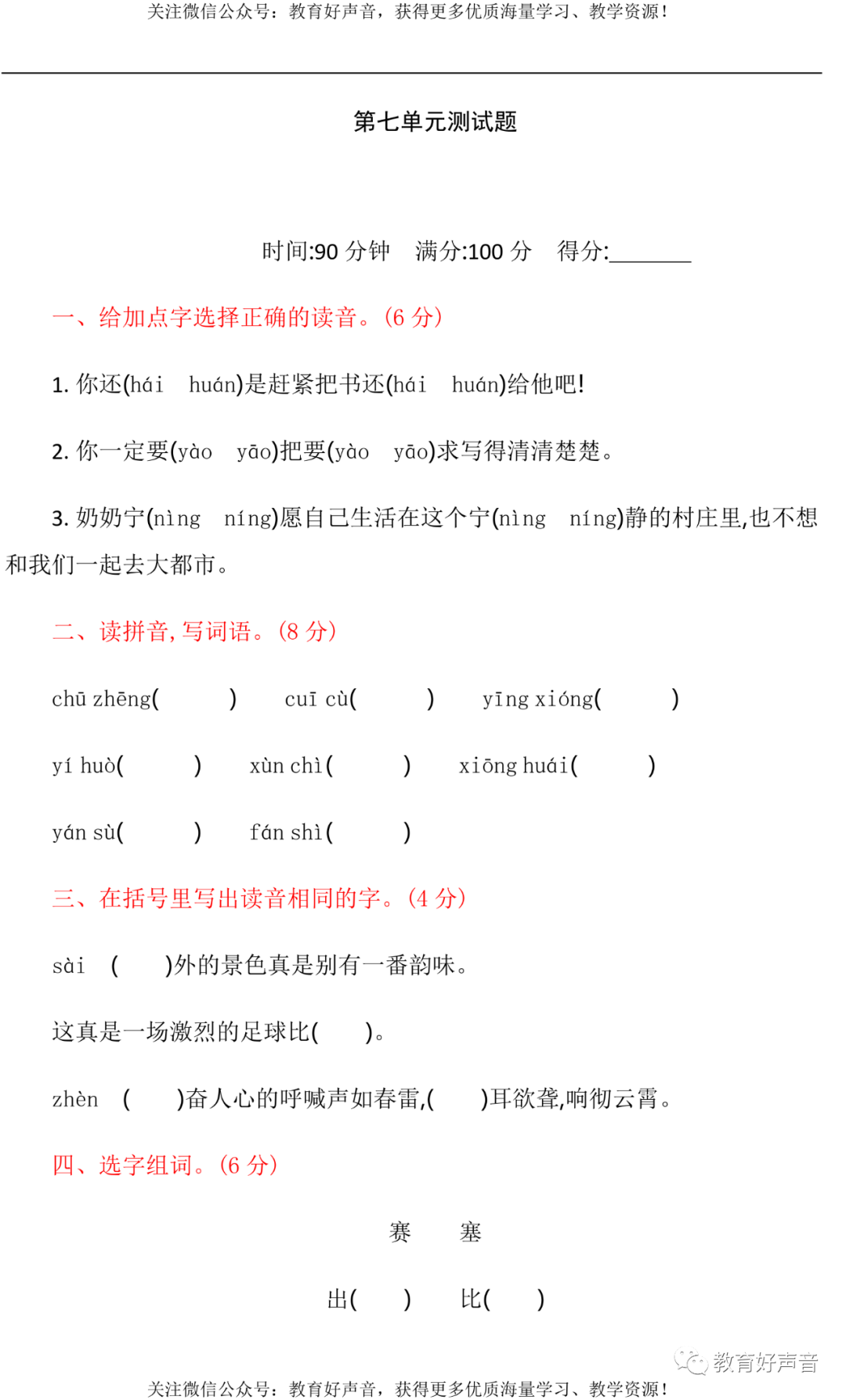 今天,话筒君老师分享给大家的是:统编版语文4年级(上册)第7单元精品试卷、答案,共5套,可打印。由于版面有限,仅展示其中一套试卷。