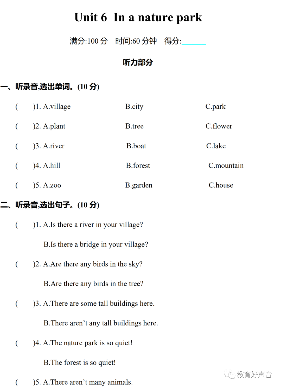话筒君给大家整理了最新人教PEP版五年级英语上册第六单元测试卷,请各位家长打印给孩子练练,更好的巩固第六单元的知识点!