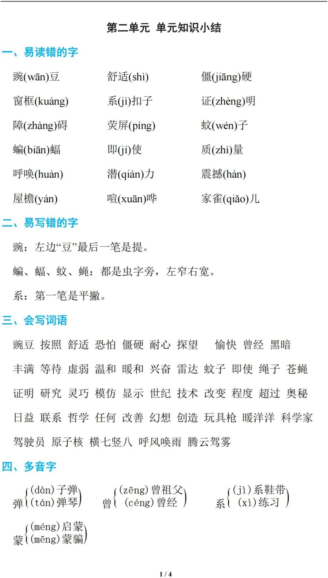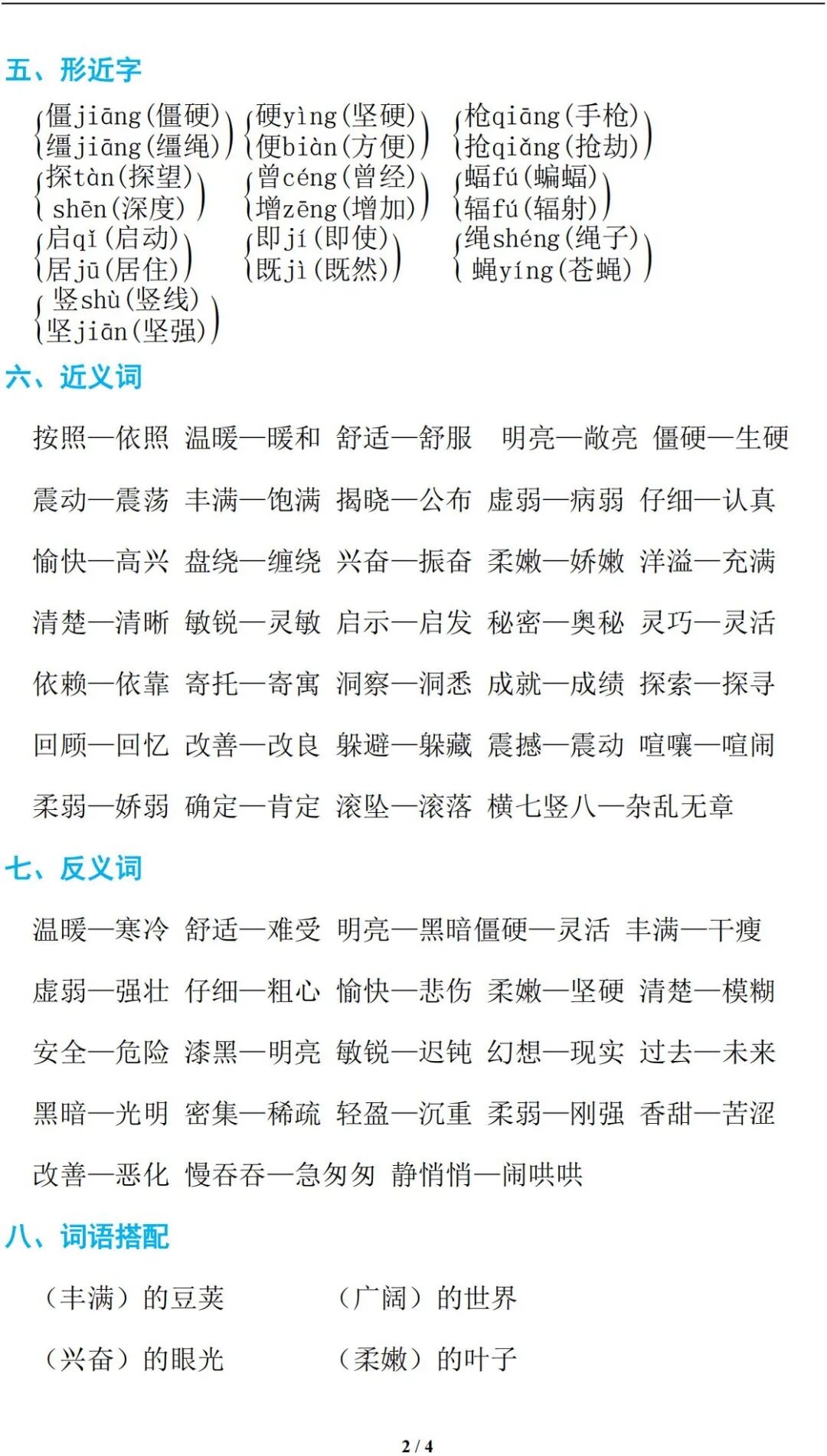 2021统编版语文(上册)四年级第二单元知识小结(可下载打印)