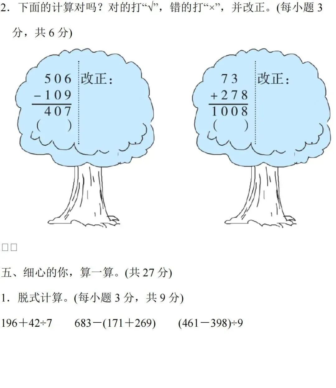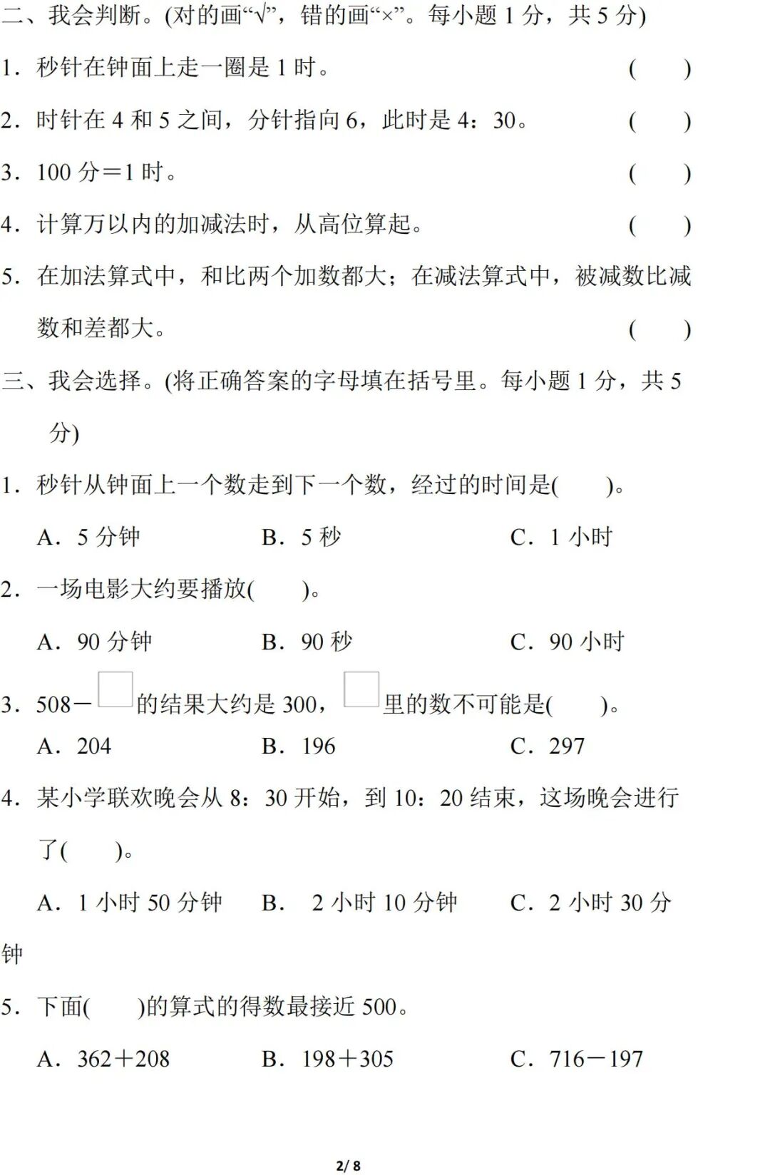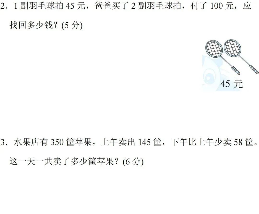 人教版数学三年级(上册)第二单元测试题,可打印!