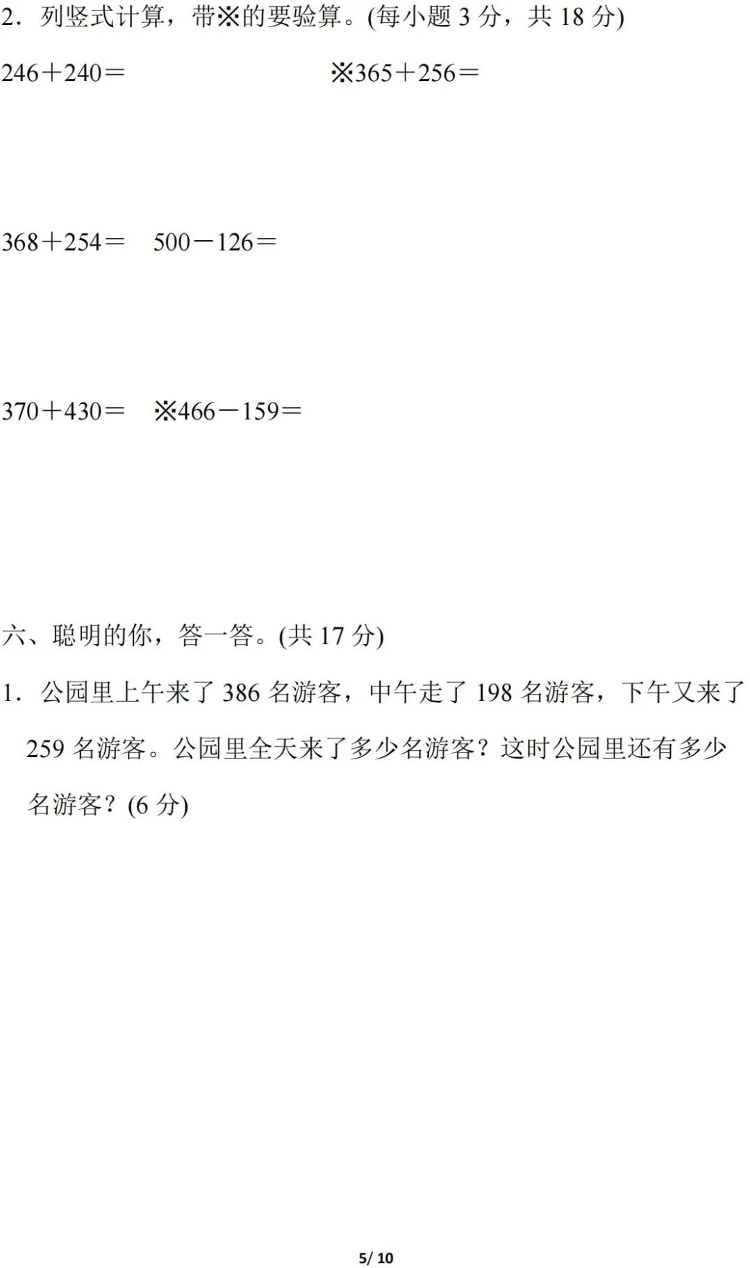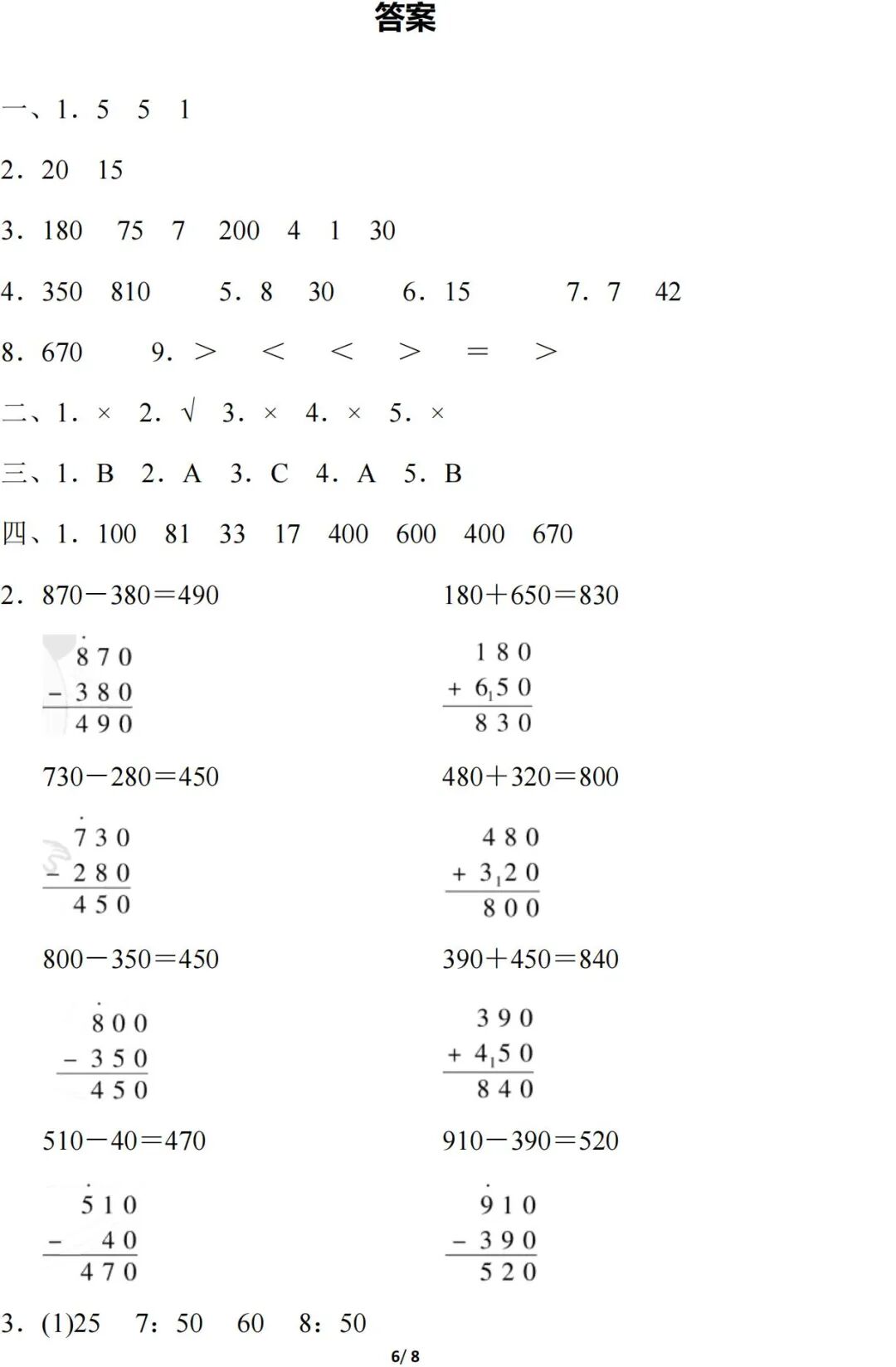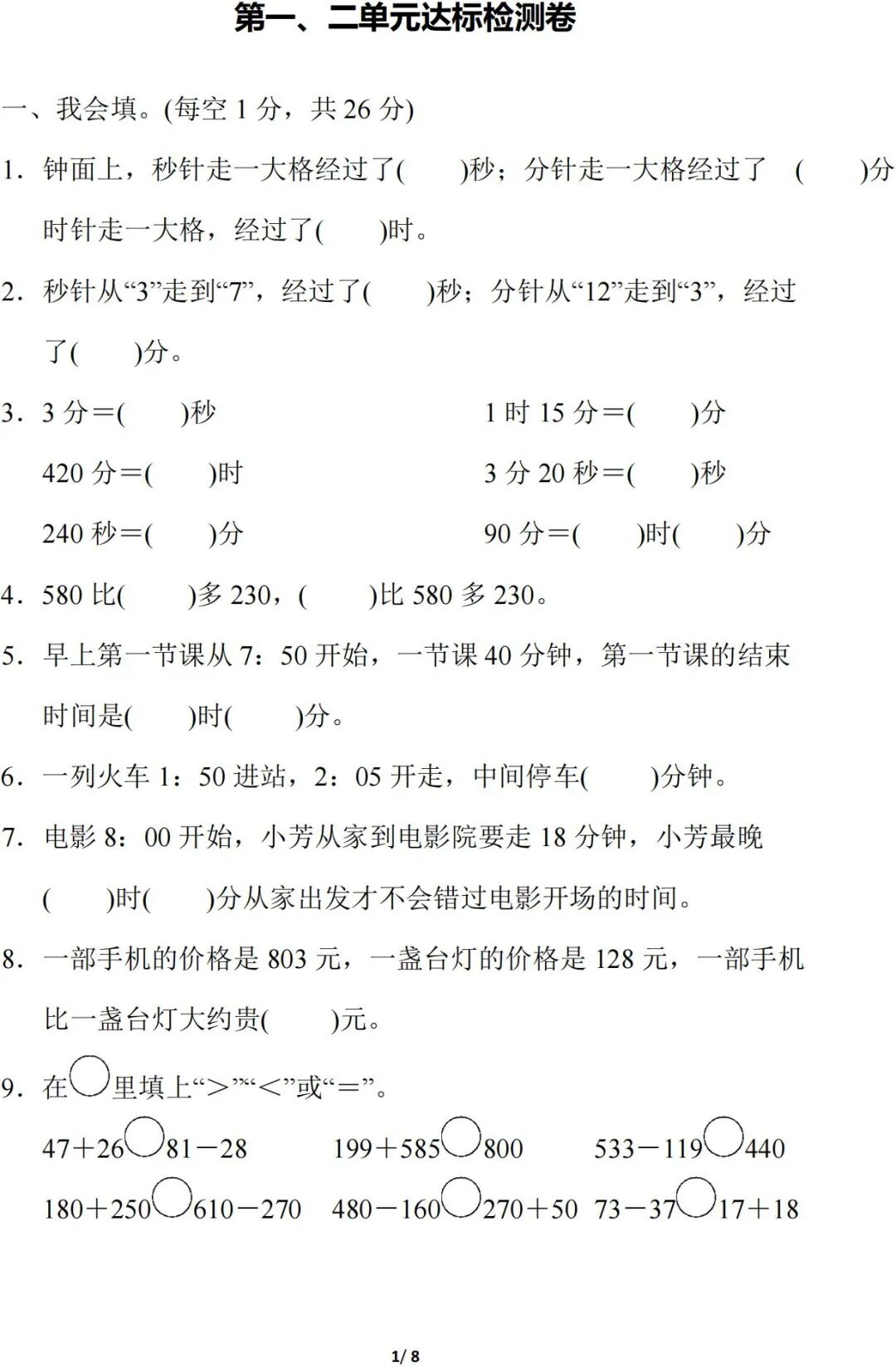 人教版数学三年级(上册)第二单元测试题,可打印!